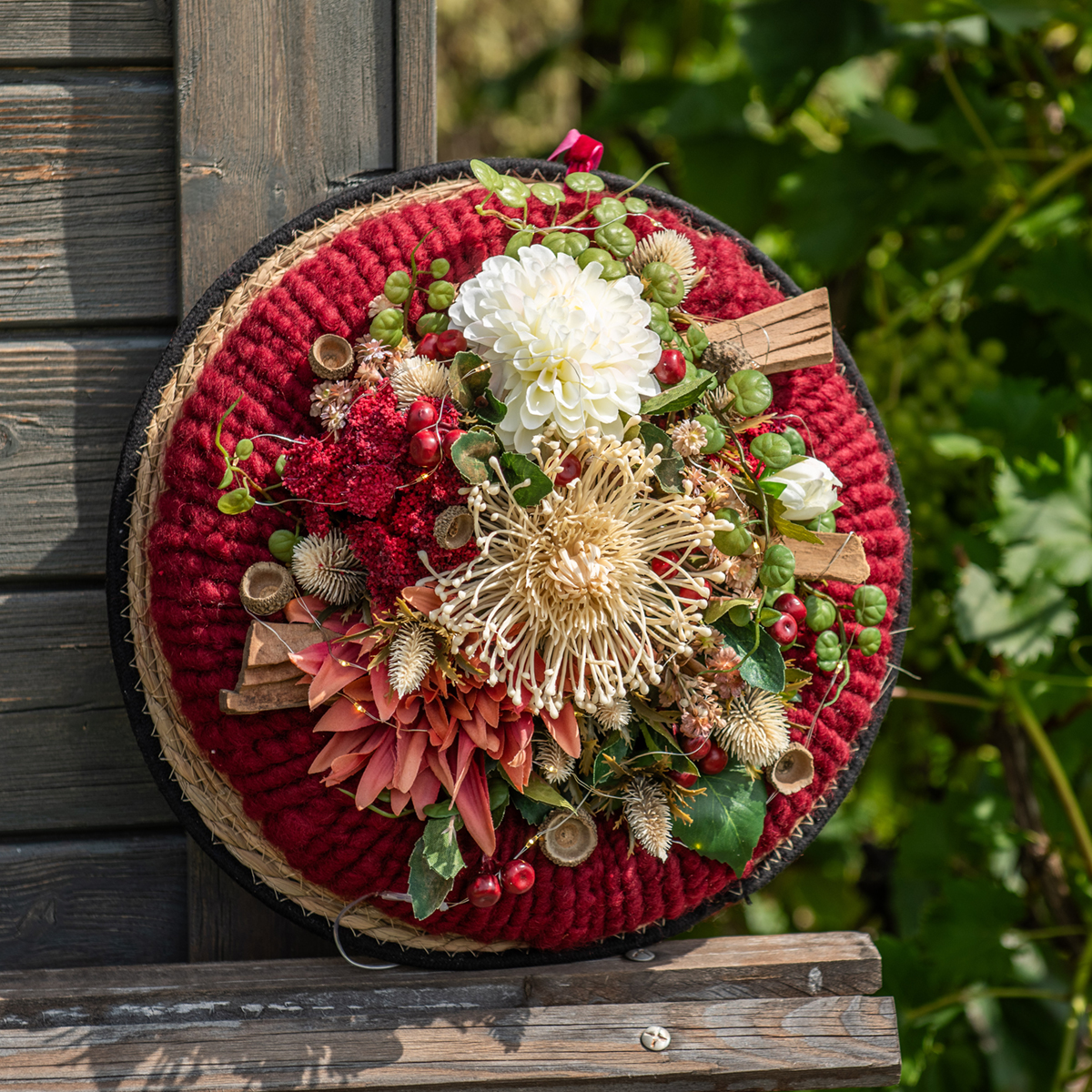 Så du kan også hænge en vinduesdekoration eller endda et juletræ med det og skabe en festlig atmosfære. Prøv også at dekorere en dørramme eller en del af en væg med filtkablet og fastgør derefter små smykker, som kegler, julefigurer og noget grangrønt derpå med en nål, klemme eller noget tråd. Selvfølgelig kan du også danne et hjerte ud af filtbåndet og bruge det som smykker til morsdag eller valentinsdag.
