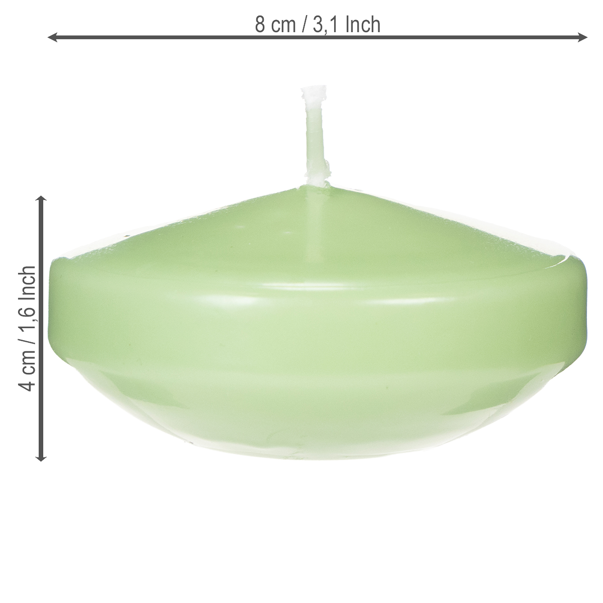 Vores dekorative flydelys i elegant grøn forvandler ethvert miljø til en atmosfære af varme og elegance. Uanset om det er til et bryllup, en romantisk middag for to eller et afslappende wellness-øjeblik derhjemme, skaber disse flydelys en betagende atmosfære. Med en diameter på 8 centimeter og en brændetid på cirka 8 timer er disse runde lys ideelle til lange aftener og til at glæde dine gæster med et særligt præg. De er lavet af voks af høj kvalitet og er både visuelt imponerende og usædvanligt holdbare.