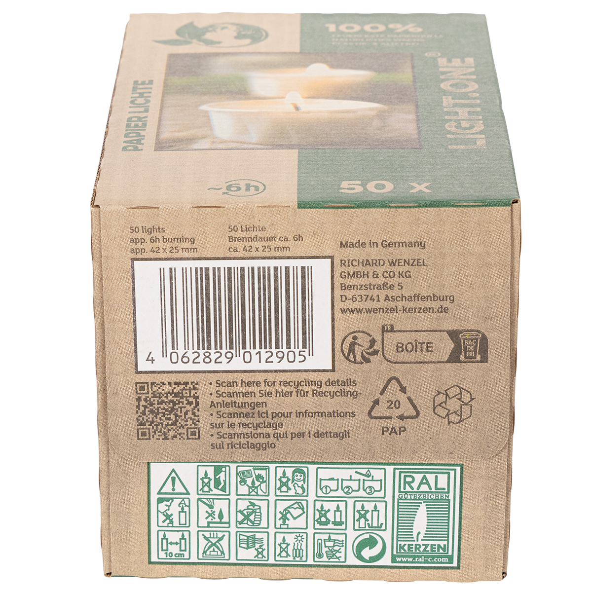 Produktnavn: Fyrfadslys i papiromslag til festlige lejligheder og stemningsfulde øjeblikke Light One 4cm 50 stk.