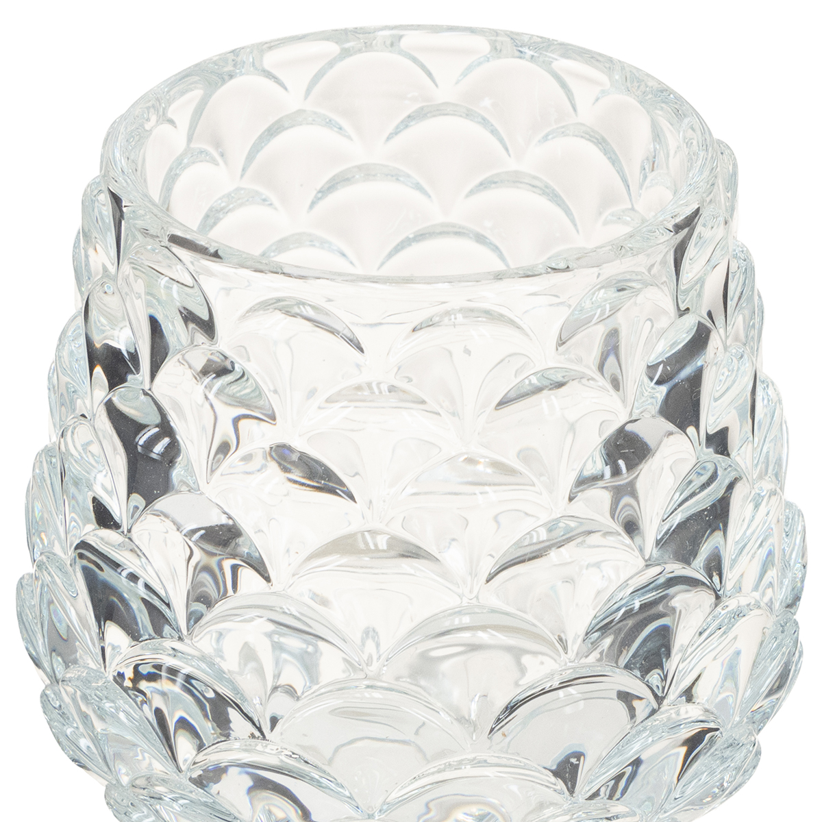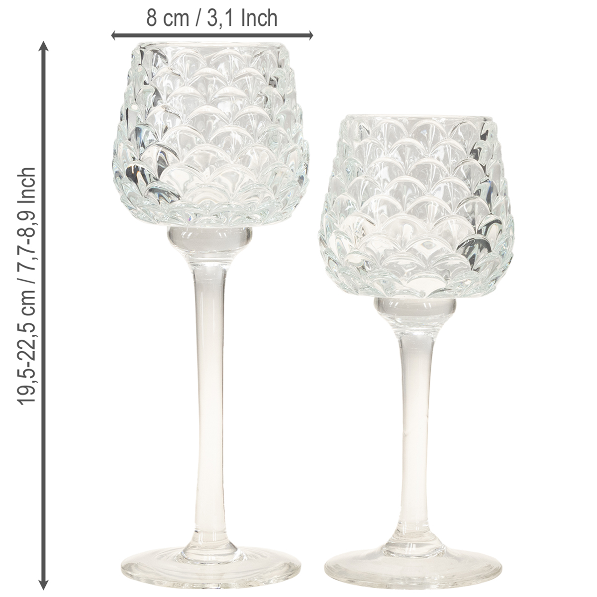 Nogle gange er det de små detaljer, der gør hele forskellen. Elsker du at skabe en hyggelig og indbydende atmosfære med lys og dekoration? Så vil du elske "Glasfyrfadsstager med kogler og fod"! Dette sæt, der består af to fyrfadsstager i forskellige højder, imponerer med sin enkle elegance og sofistikerede design, der passer perfekt ind i en bred vifte af indretningsstile. De klare glaslameller minder om en fortryllende kogle – delikate, stilfulde og tidløse. Uanset om de er som blikfang i stuen, et højdepunkt på festbordet eller en romantisk lyskilde til en hyggelig aften: Disse fyrfadsstager er virkelig et multitalent!