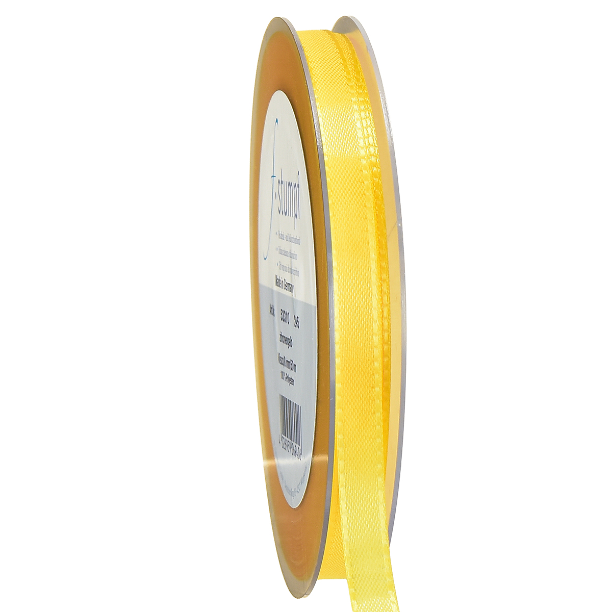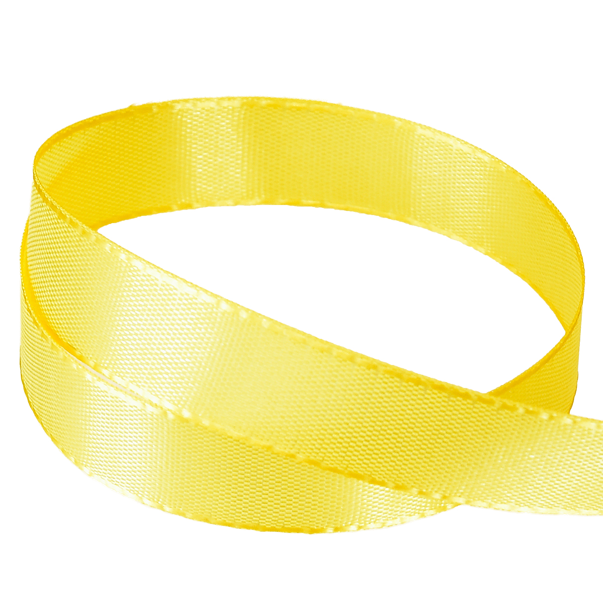 Det gule gave- og dekorationbånd er ca. 50 meter langt og ca. 10 mm bredt. Det er lavet af 100% polyamid og er placeret på en flad plastspole.