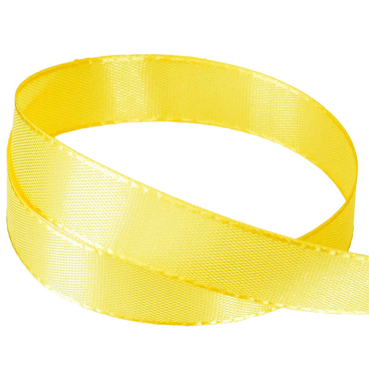 Det gule gave- og dekorationsbånd lavet af 100% polyamid er ca. 15 millimeter bredt og ca. 50 meter langt. Det er viklet på en praktisk plastspole.
