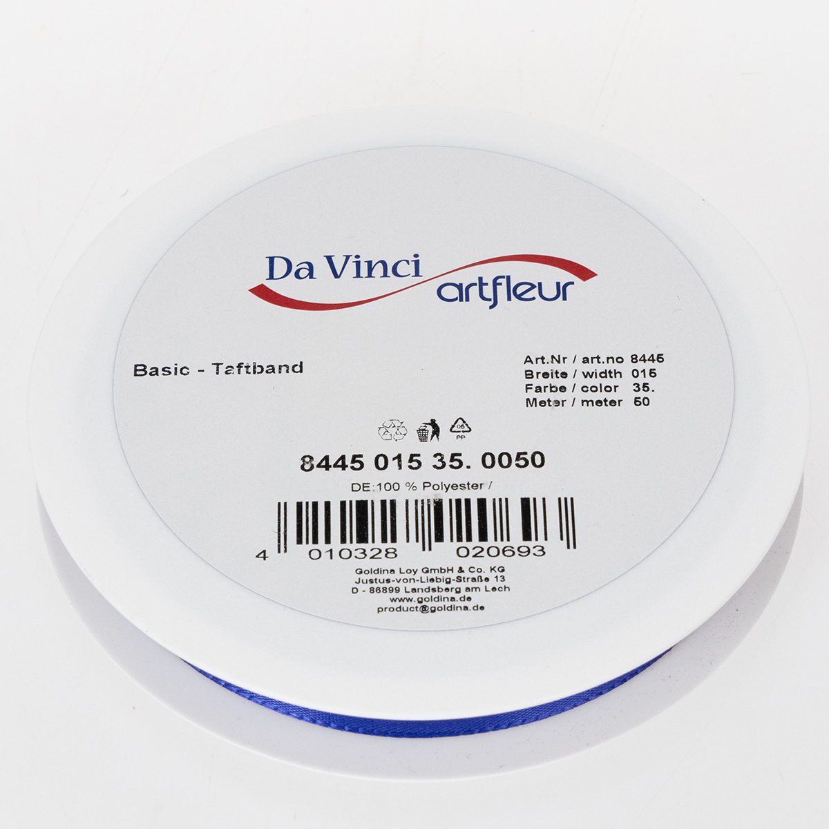 Det smukke gave- og dekorationsbånd i mørkeblå er cirka 15 millimeter bredt og cirka 50 meter langt. Den er lavet af 100% polyester og kommer til dig på en praktisk, flad plastikspole.