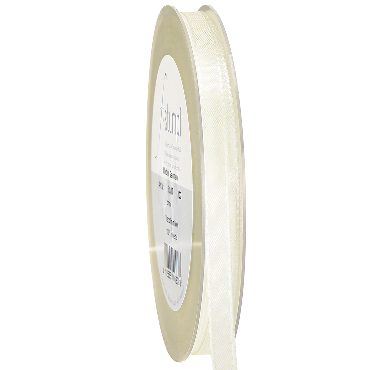 Det cremefarvede gave- og dekorationbånd måler cirka 8 millimeter i bredden og cirka 50 meter i længden. Det består af 100% polyamid og rulles op på en plastikspole.