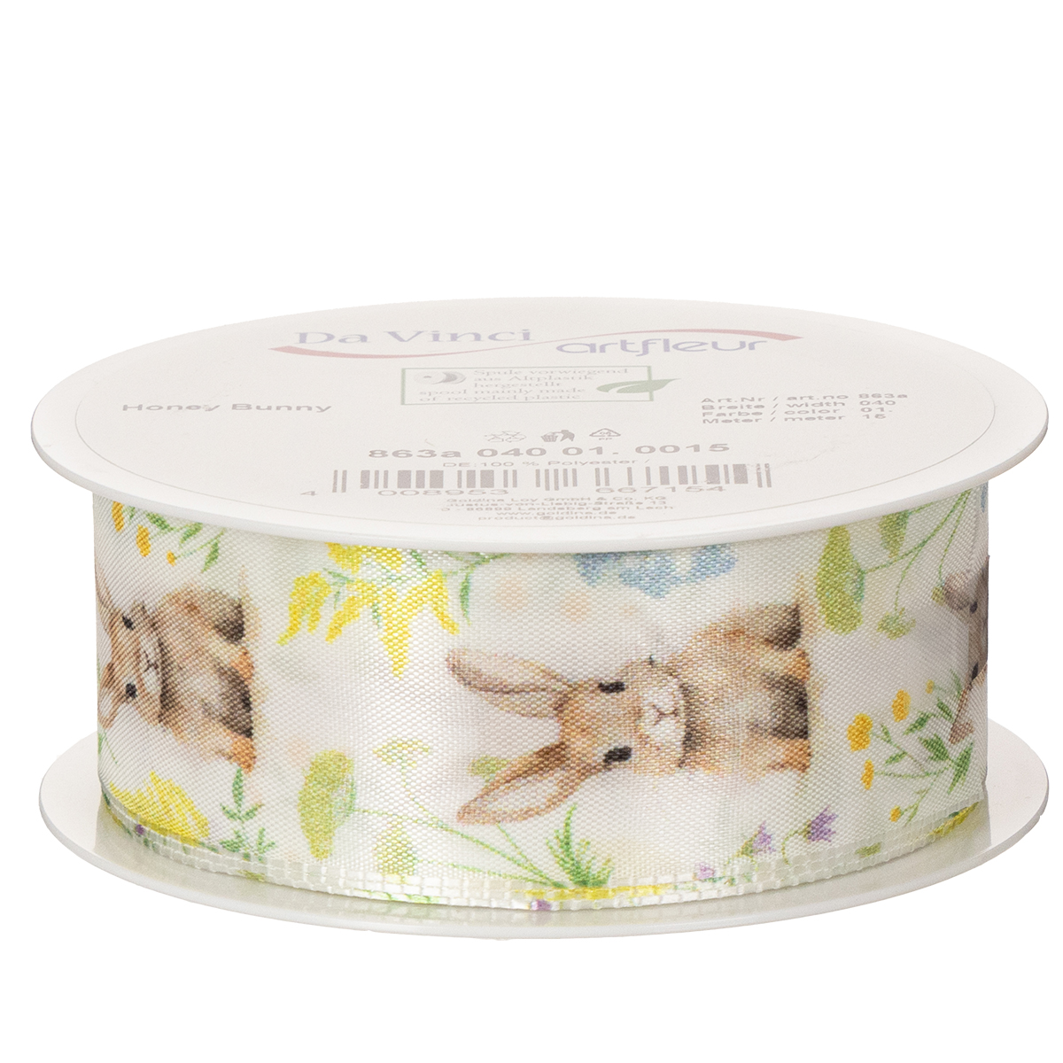 Gavebånd med påskeharemotiv til festlig indpakning, 15 m