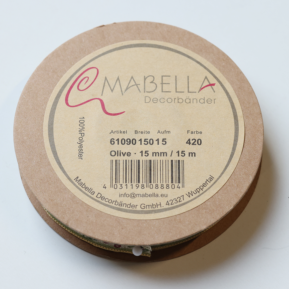 Gavebånd olivengren med elegante grene og oliven 1,5 cm 15 m