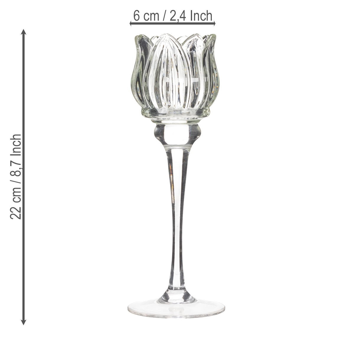 Glasblomstlysholder til elegant borddekoration, begivenheder og bryllupper, 22 cm