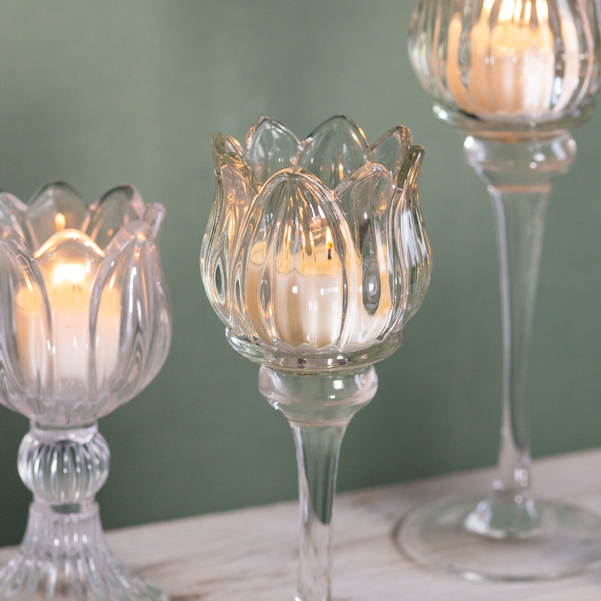 Højkvalitets fyrfadsstage i glas formet som en blomst – et elegant tilbehør til hjemmet