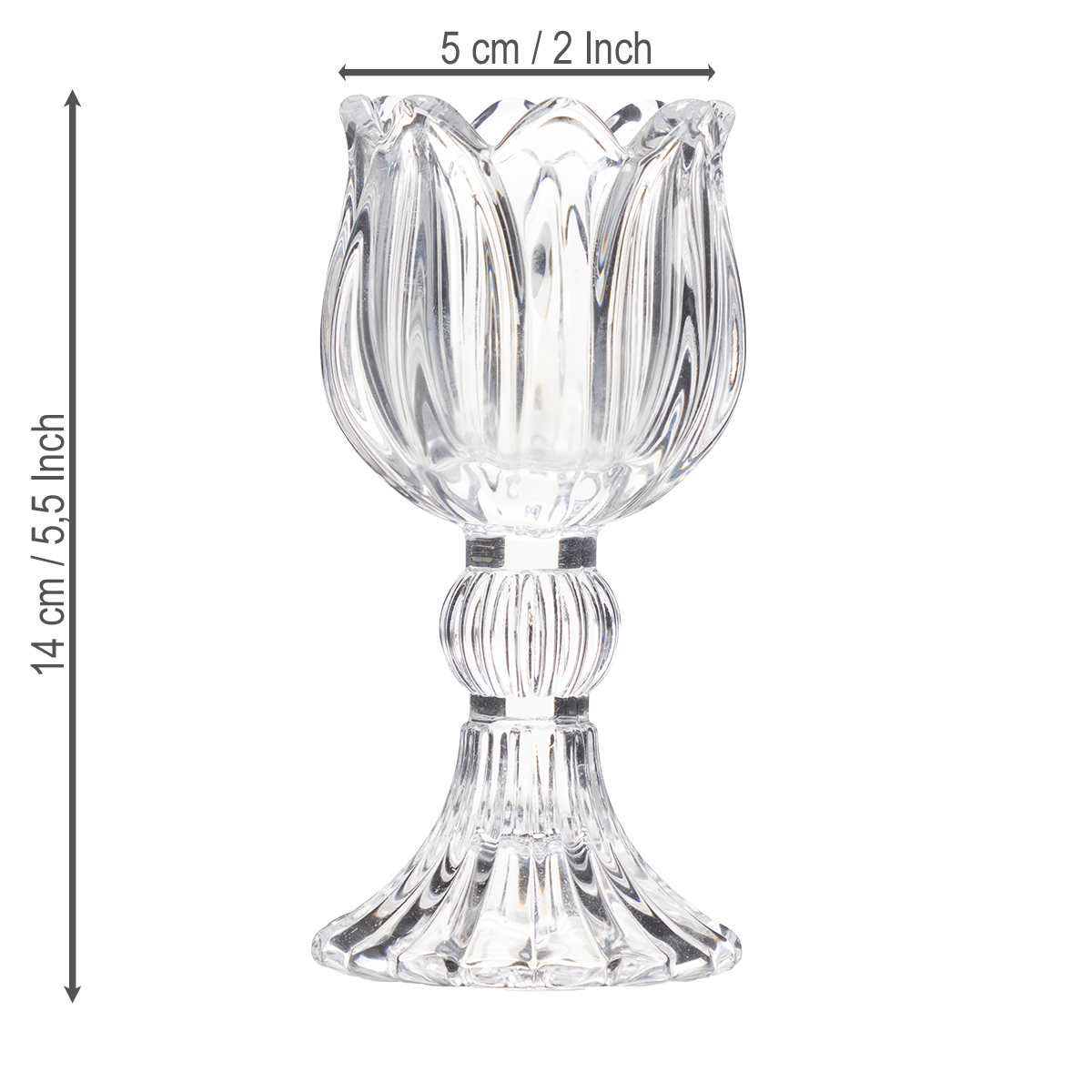 Forvandl din borddækning til noget helt særligt! Disse glaslysestager med deres fine blomstermønster fortryller med deres tidløse elegance og bringer et strejf af glimmer til ethvert festligt bord. Uanset om det er en romantisk middag, en bryllupsreception eller en hyggelig aften med levende lys, er disse udsøgte glaslysestager det perfekte supplement. Deres klare, transparente design passer til næsten enhver stil. Og med en højde på 14 cm er de hverken for dominerende eller for diskrete, men lige præcis perfekte til at forbedre din borddækning på en stilfuld måde. Skab frit en atmosfære af skønhed med disse glaslysestager – til alle de særlige lejligheder, livet har at byde på!