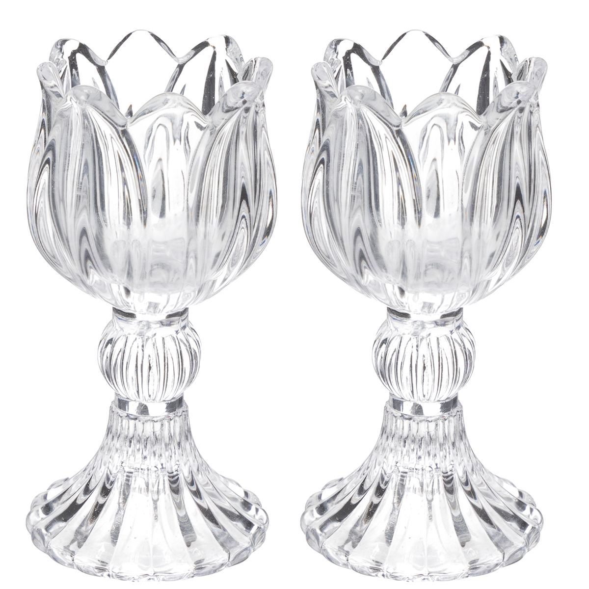 Glaslysestager med blomstermønster til elegant borddekoration, 14 cm, 2 stk.