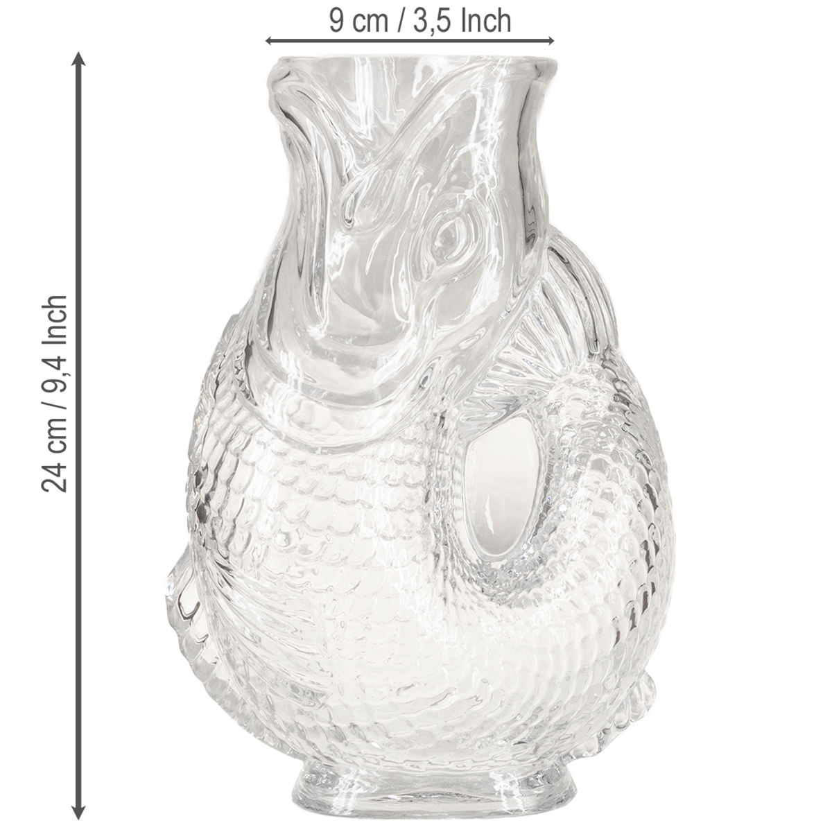 Det robuste glas møder et smagfuldt fiskedesign, hvor hver eneste detalje, fra skæl til halefinne, er kærligt fremstillet. Det gennemskinnelige look fremkalder vandets glimt og giver din indretning et let og sofistikeret præg. Uanset om det er som gave eller til dit eget hjem, er denne fiskevase et sandt blikfang, der fortæller en historie.