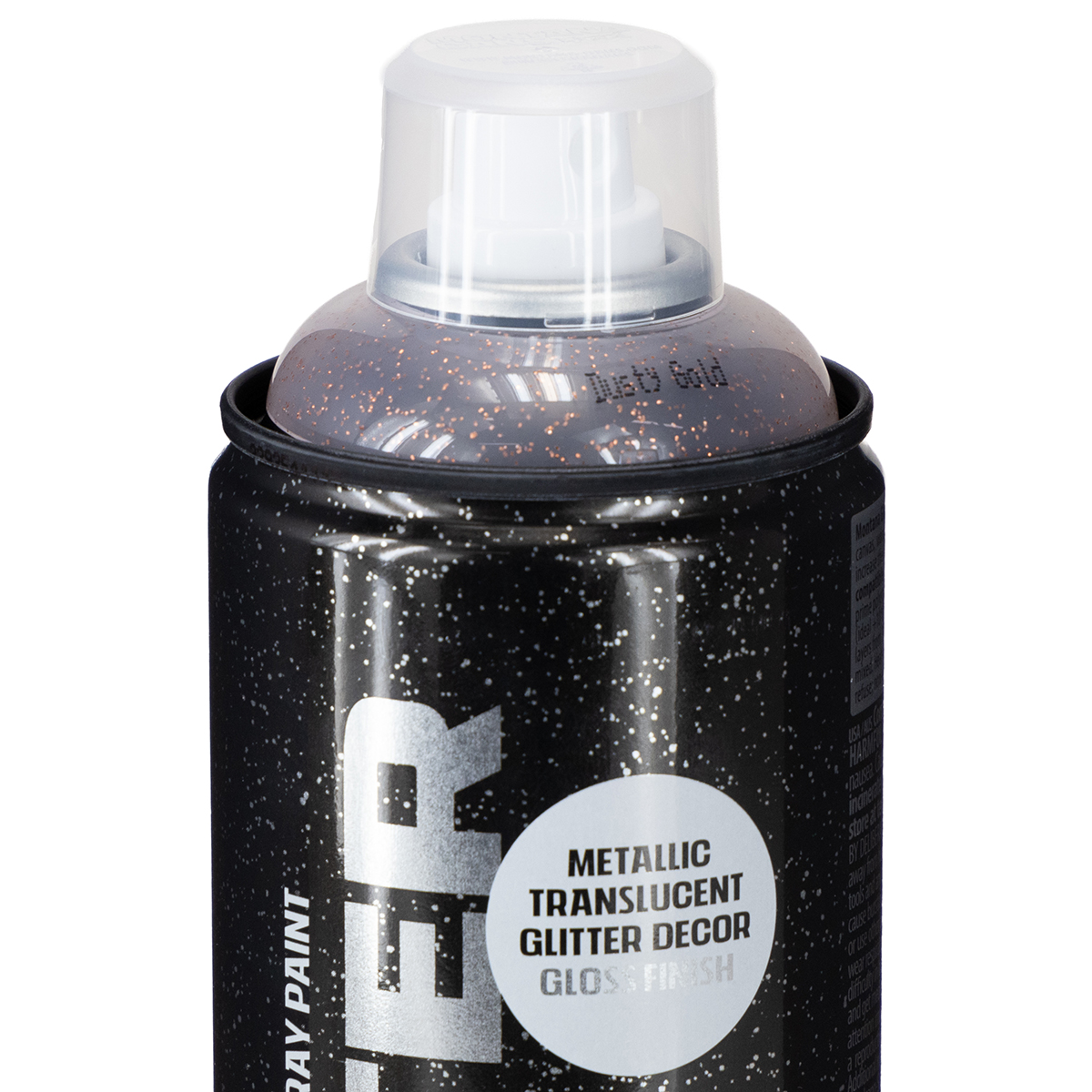 Dusty Gold-nuancen, en spændende nuance af rosaguld, er ideel til dem, der foretrækker et luksuriøst, men usædvanligt look. Den transparente glitterspray skaber, takket være sine pigmenter, en strålende metallisk glimmer, mens den underliggende farve forbliver synlig – den perfekte finish til dine kreative projekter.