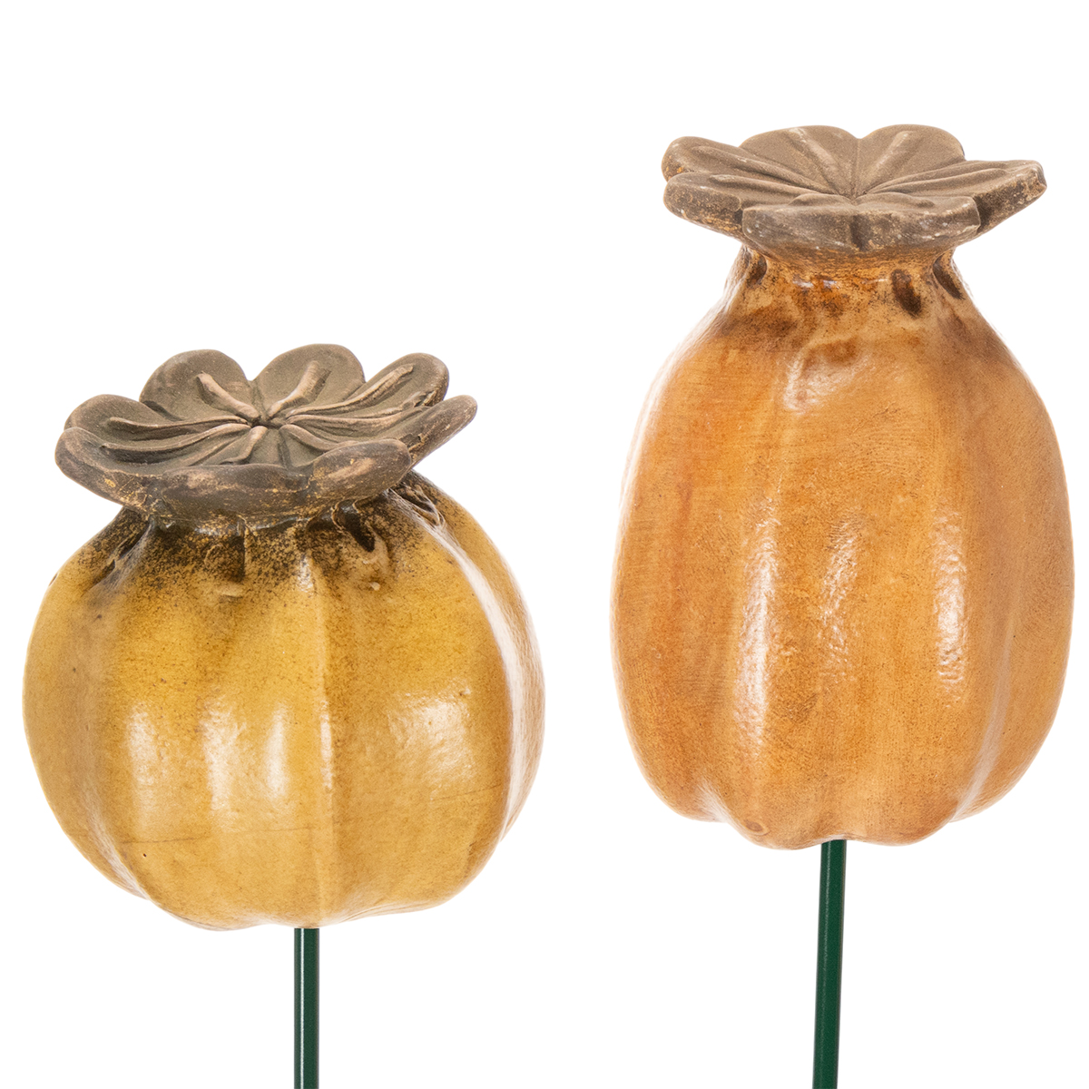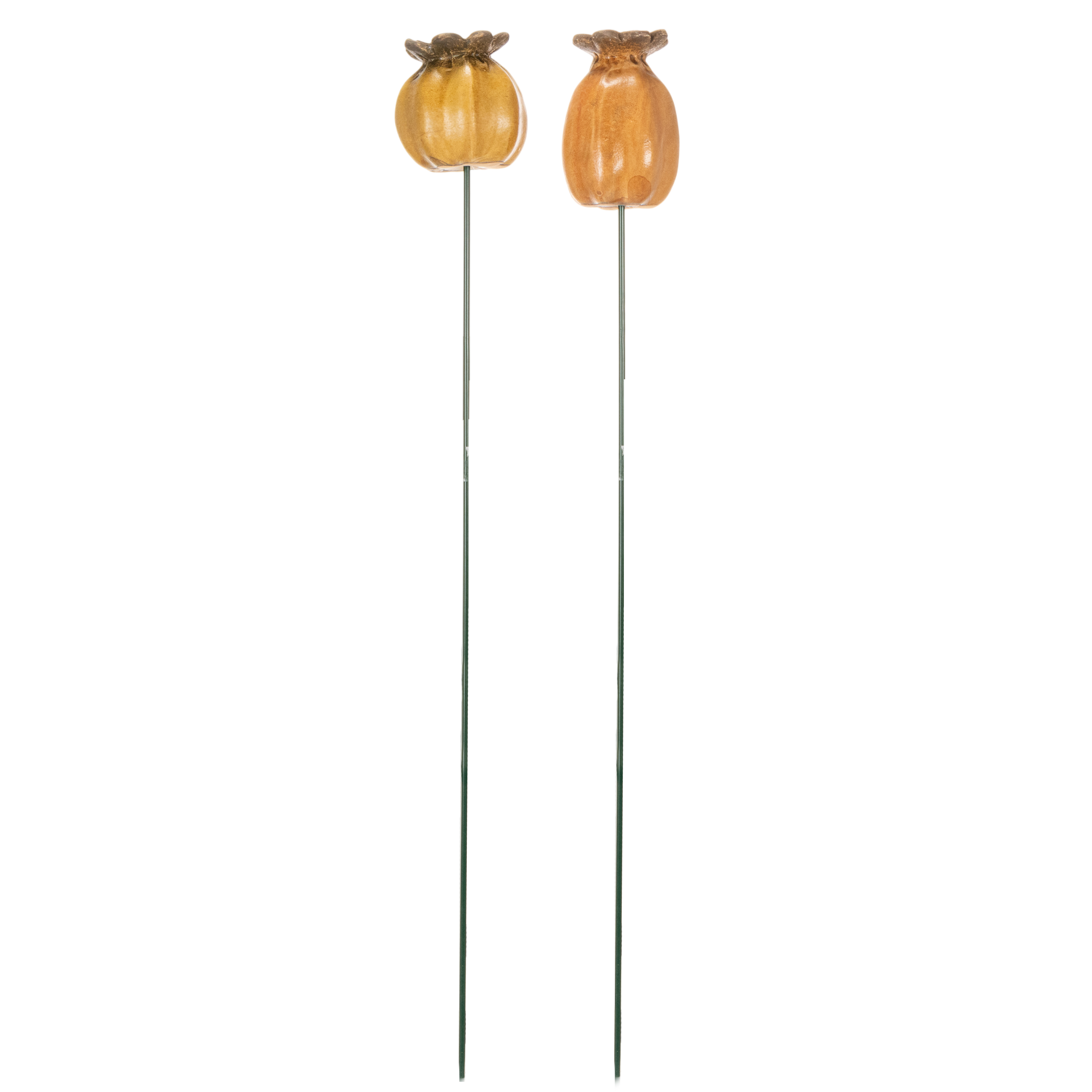 Havepæl med valmuefrøkapsel til stilfuldt havedesign, blomsterbed eller altan, 60 cm, 2 stk.