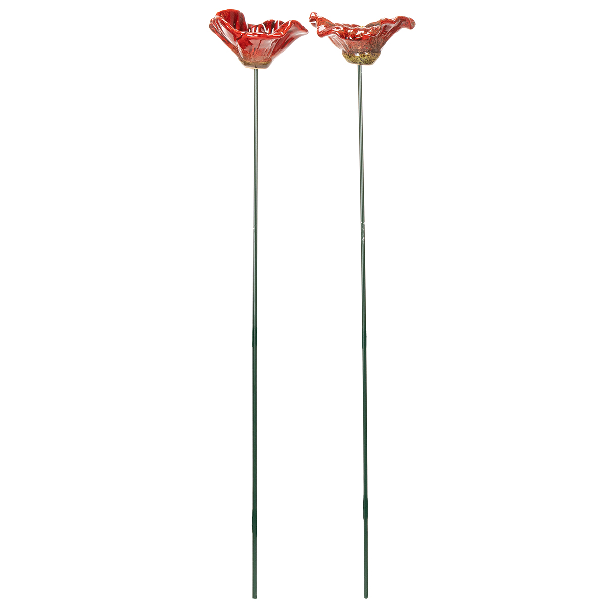 Havepæl valmue keramik, usædvanligt design til blomsterbede, 52 cm, 2 stk.