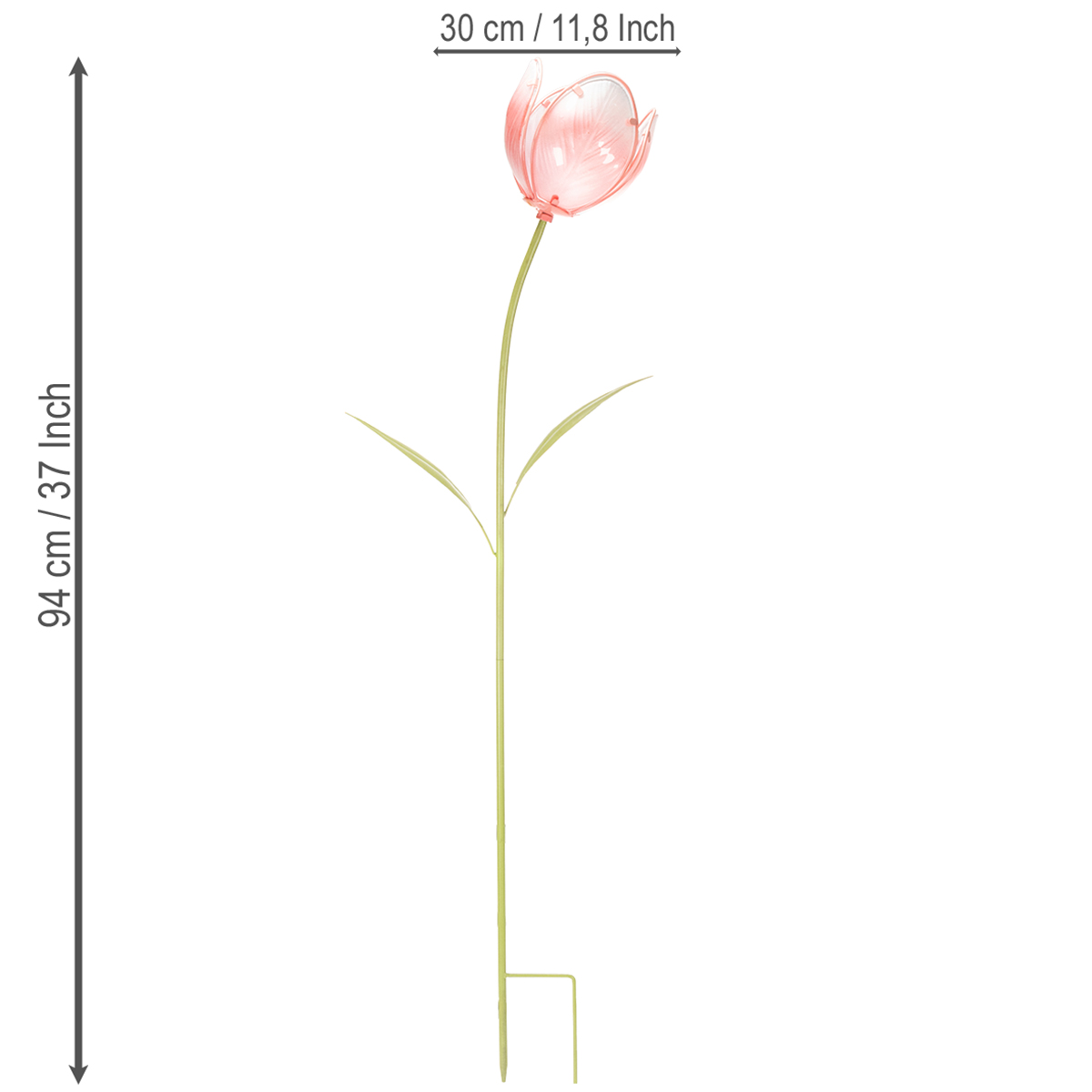 Leder du efter et charmerende blikfang til dit blomsterbed eller din terrasse? Så tag et kig på vores havepæl formet som en smuk tulipan! Med en højde på 94 cm og en stor lyserød glasblomst bringer denne havepæl øjeblikkeligt elegance og farve til dine udendørsområder. Perfekt til at puste liv i blomsterbede eller til at tilføje et strejf af farve til altanhaver! Uanset om din stil er rustik, moderne eller romantisk – denne dekorative blomst passer ind overalt. Det håndlavede look, lavet af materialer af høj kvalitet, gør den ikke kun vejrbestandig, men også en langvarig tilføjelse, der vil give din have noget særligt. Har du lyst til en lille stilændring i din have? Prøv det!