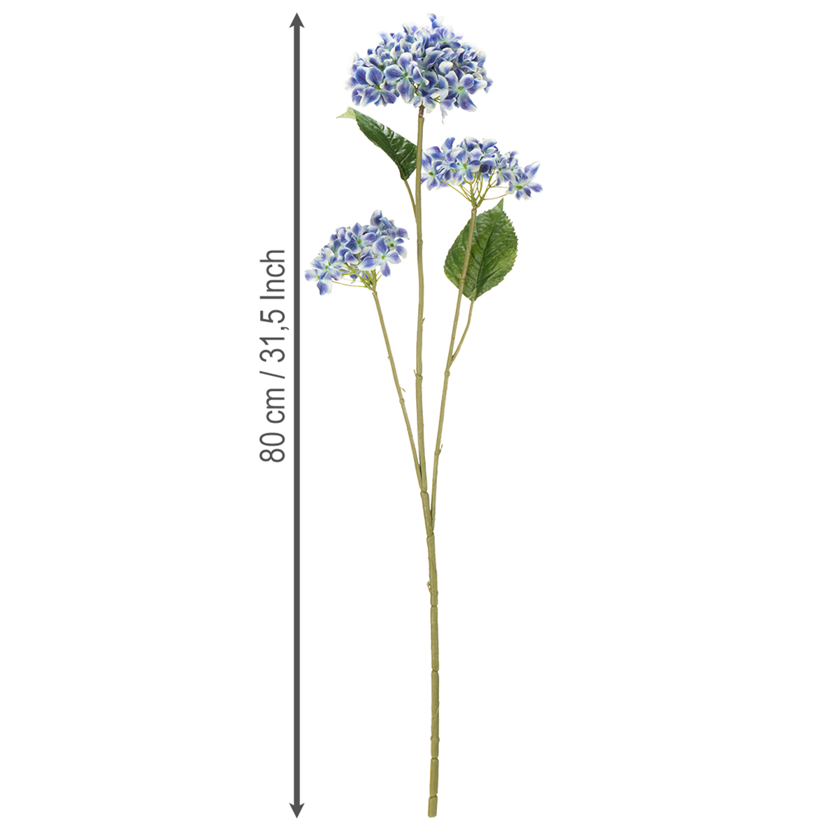 Elsker du at forbedre dine opholdsrum med individuelle detaljer, men er du træt af visnende blomster? Så vil du elske vores hortensiagren til stilfuld boligindretning! Med sin imponerende 80 centimeter længde og smukke blå blomster ligner den en perfekt kopi af naturlige hortensiaer – uden besværet med vedligeholdelse. De tre blomster pr. gren ser så naturtro ud, at dine gæster garanteret vil tage et kig på dem to gange! Uanset om den er på spisebordet, i en stor gulvvase eller som en del af et kunstnerisk arrangement, bringer denne kunstige hortensia et strejf af elegance til ethvert hjem.