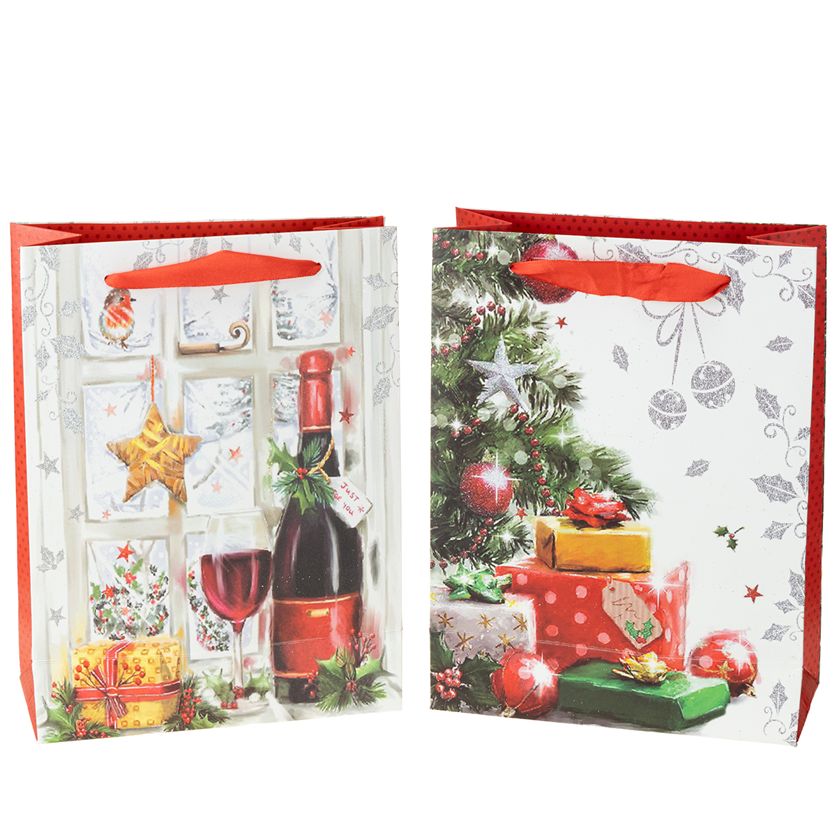 Julegavepose 8cm x 18cm H24cm sæt med 2 stk
