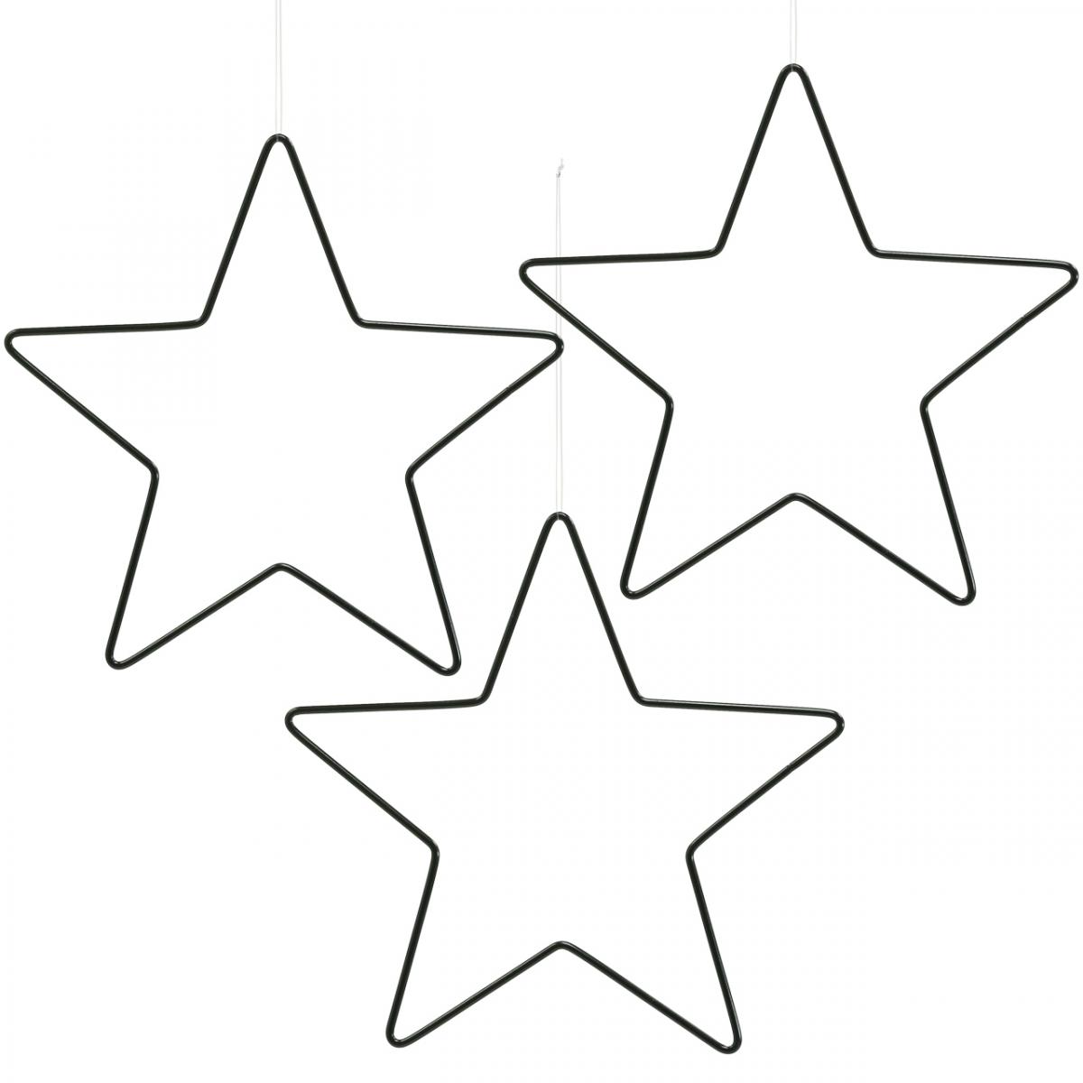 Julepynt metalstjerne sort stjernevedhæng 15cm 6 stk