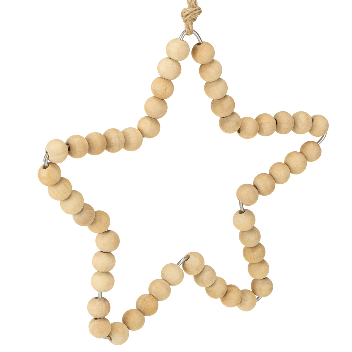 Og de seks dekorative bøjler dekoreret med træperler kan sættes på juletræet som juletræspynt. Du kan også bruge julevedhængene som hængedekorationer eller som julepynt til vinduet. De smukke runde træperler får den dekorative bøjle til at se lige godt ud fra alle sider.