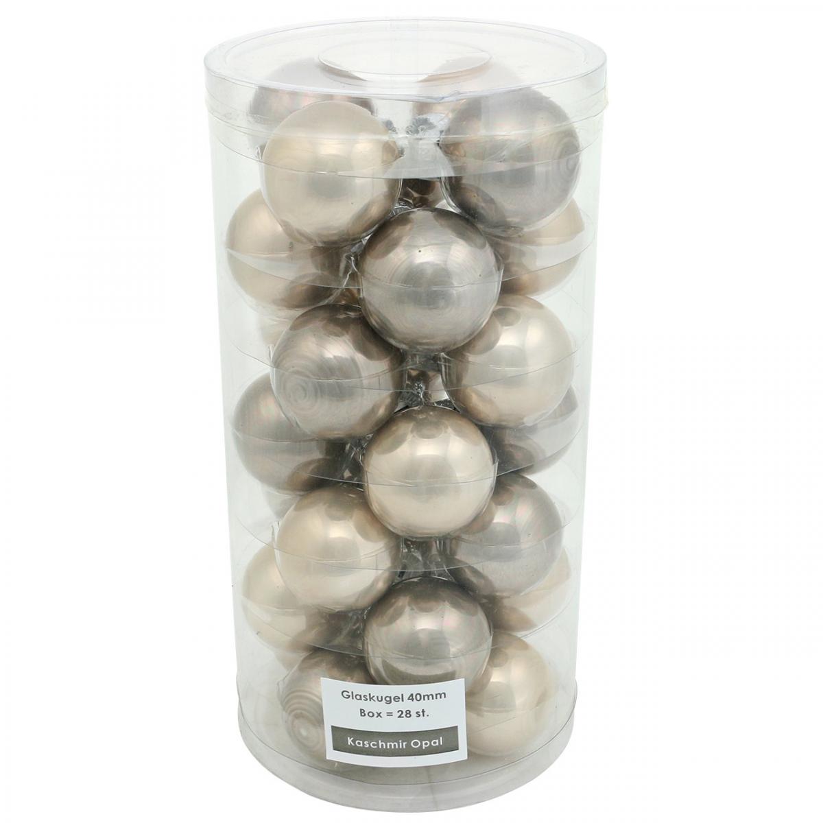 Juletræskugler, minitræskugler, julepyntmix beige/perlemor H4,5cm Ø4cm ægte glas 24 stk.
