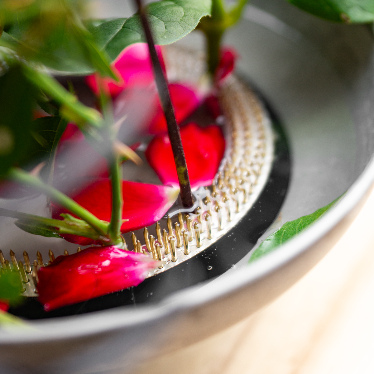 Klassisk Kenzan i ringform – rundt blomsterpindsvin af messing til perfekte arrangementer