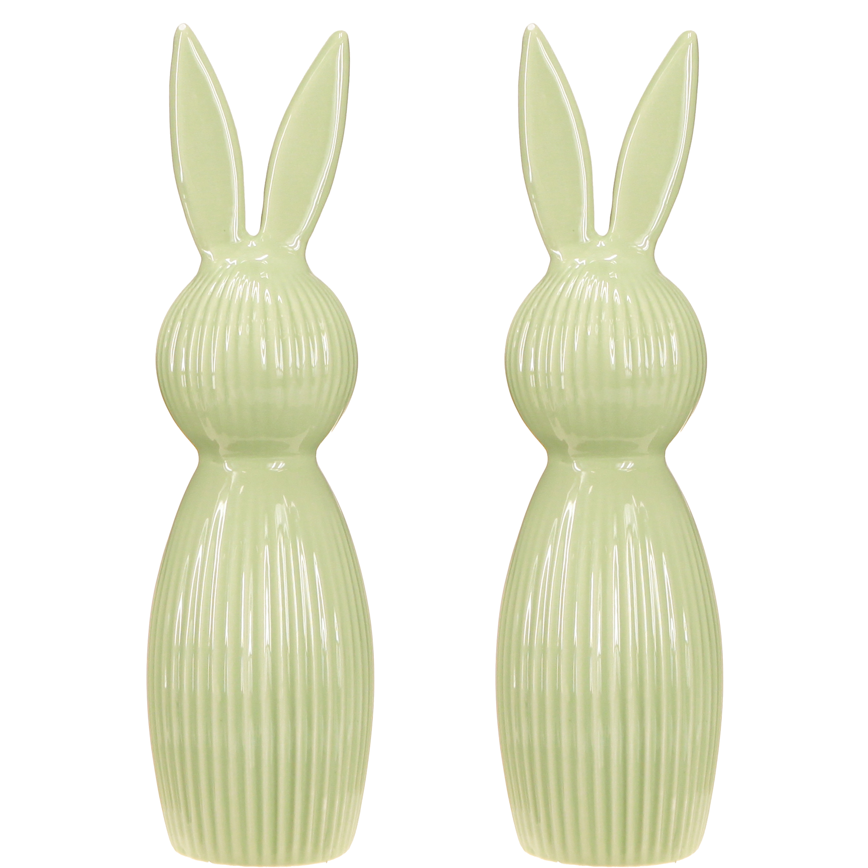 Keramik påskeharefigur i pastelgrøn, borddekoration, 22 cm, 2 stk.