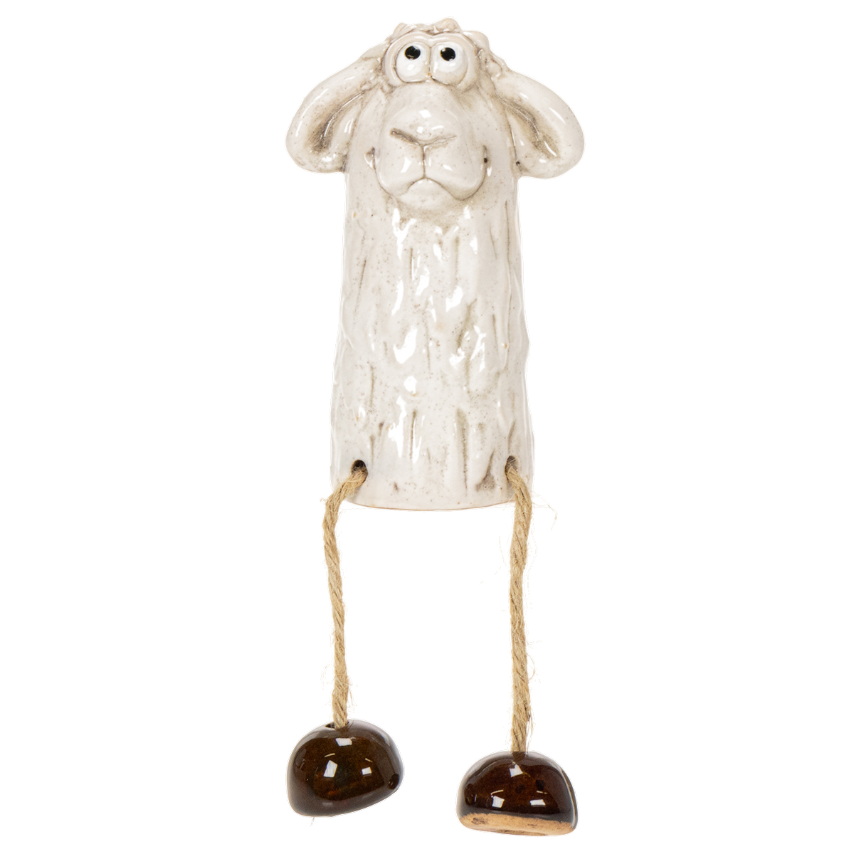 Leder du efter en lille dekorativ genstand, der bringer charme og hygge til dine rum? Så er denne keramiske fårefigur lige sagen! Med sin søde, siddende stilling og kærligt fremstillede design er den et særligt blikfang ikke kun til påske, men hele året rundt. Uanset om den er arrangeret på bordet, i vindueskarmen eller endda som et blikfang på din altan – denne figur vil garanteret tiltrække opmærksomhed. Den varme hvide tone kombineret med de dinglende snorben og brune fødder giver den keramiske figur et legende, men tidløst præg. Perfekt til landlig eller skandinavisk indretning. Vil du skabe en magisk kombination? Prøv den med naturlige materialer som træ eller mos som base. Lad din kreativitet få frit løb!