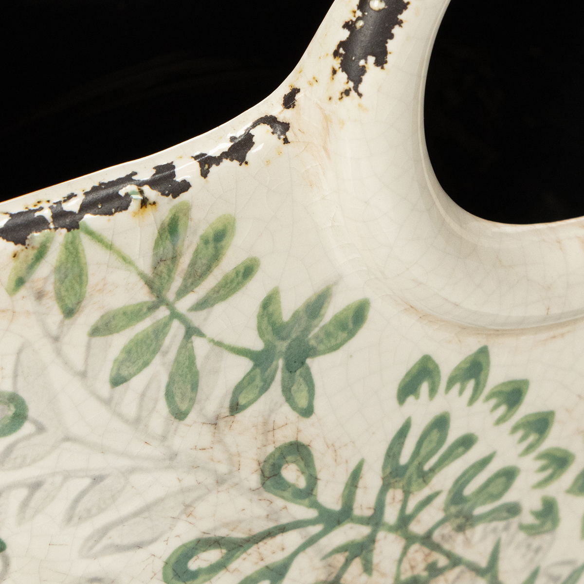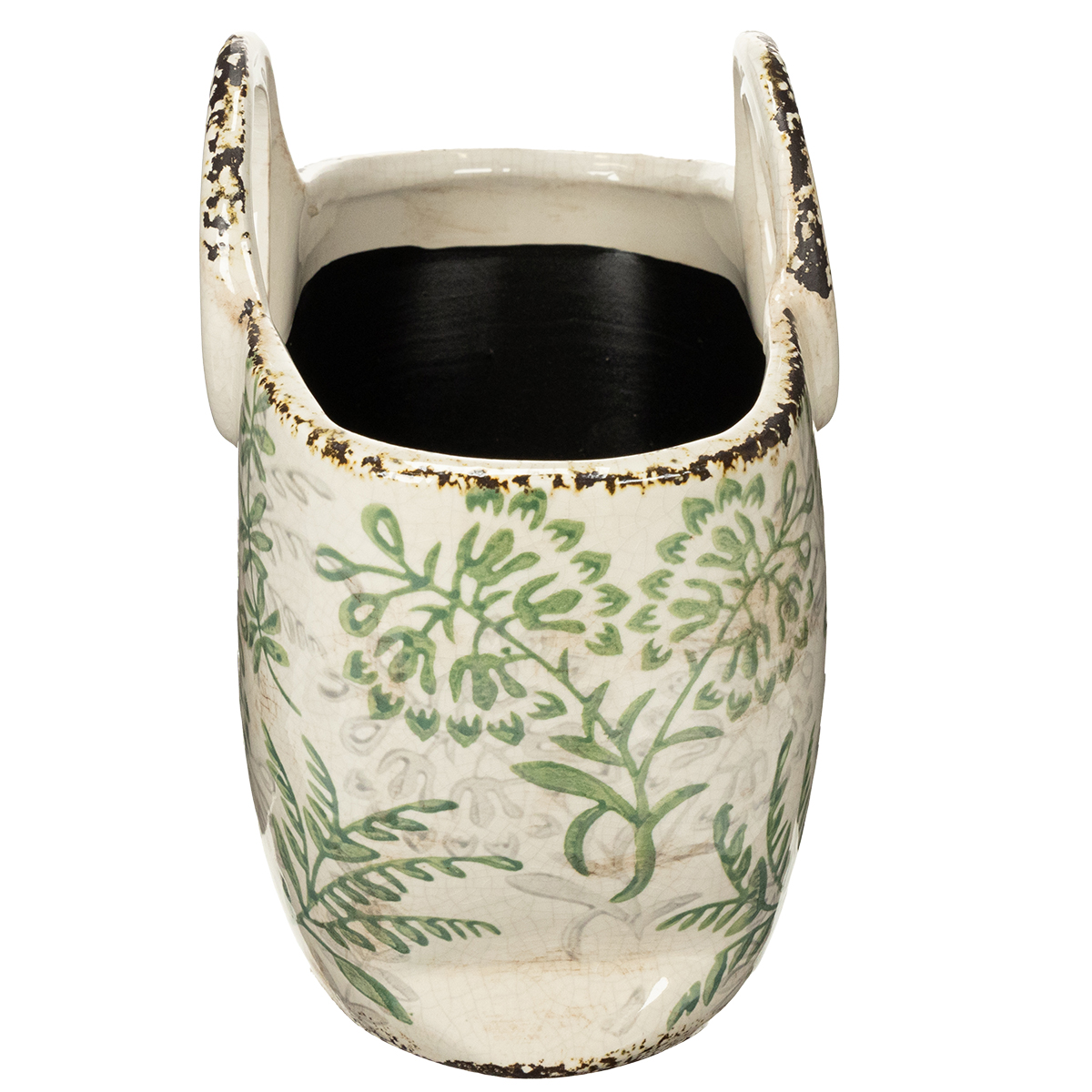 Det robuste keramiske materiale er holdbart og egnet til både indendørs og udendørs brug. Dette vintagemøbel stråler virkelig på altaner eller vindueskarme. Den grønne bladdekoration giver objektet et naturligt look, der smukt fremviser dine planter. Det er ikke underligt, at sådanne stilfulde plantekasser bliver mere og mere populære som kreative dekorative accenter.