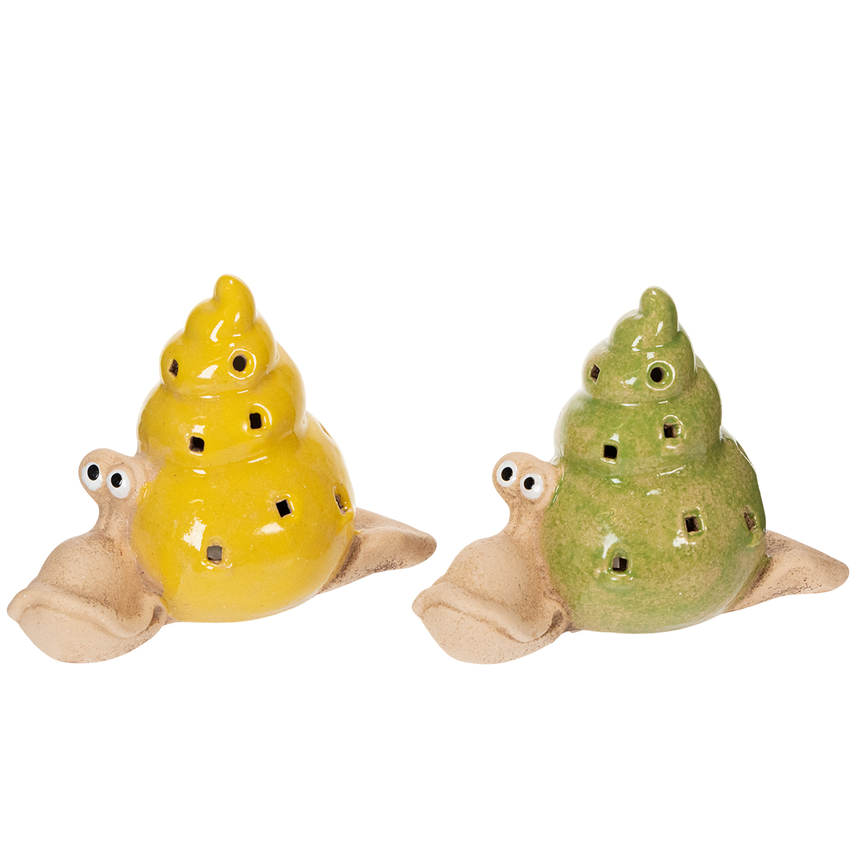 Keramisk snegledekorationsfigur med LED som sjov borddekoration til hjem og kontor, 12 cm, 2 stk.