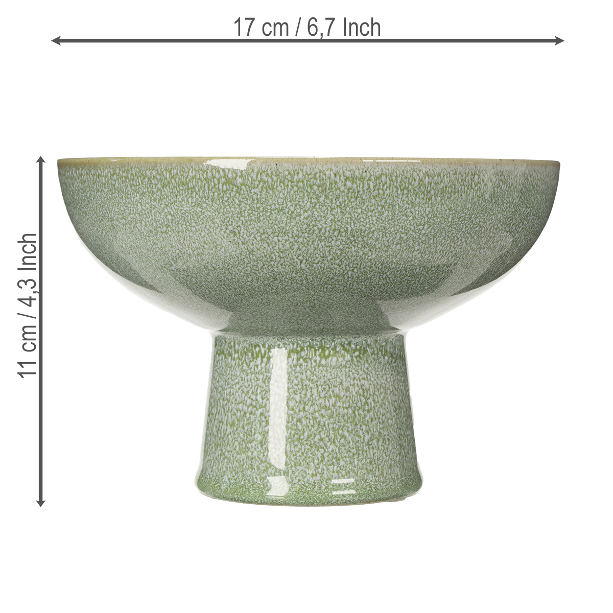Denne skål med en diameter på 17 centimeter og en diameter på 17 centimeter er fremstillet af keramik af høj kvalitet og er den perfekte kombination af æstetik og funktion. Med en behagelig højde på 11 centimeter og en diameter på 17 centimeter står den på en lille, men robust base, der bidrager til dens appel. Den glatte, grøngrå overflade med sit diskrete mønster komplementerer naturlige materialer som træ eller linned smukt og skaber et look, der både er tidløst og moderne. Leder du efter en særlig dekorativ skål til din stue? Denne stilfulde keramikskål bringer lethed og elegance til ethvert rum. Den ser særligt flot ud på et træbord eller sammen med lyst linned.