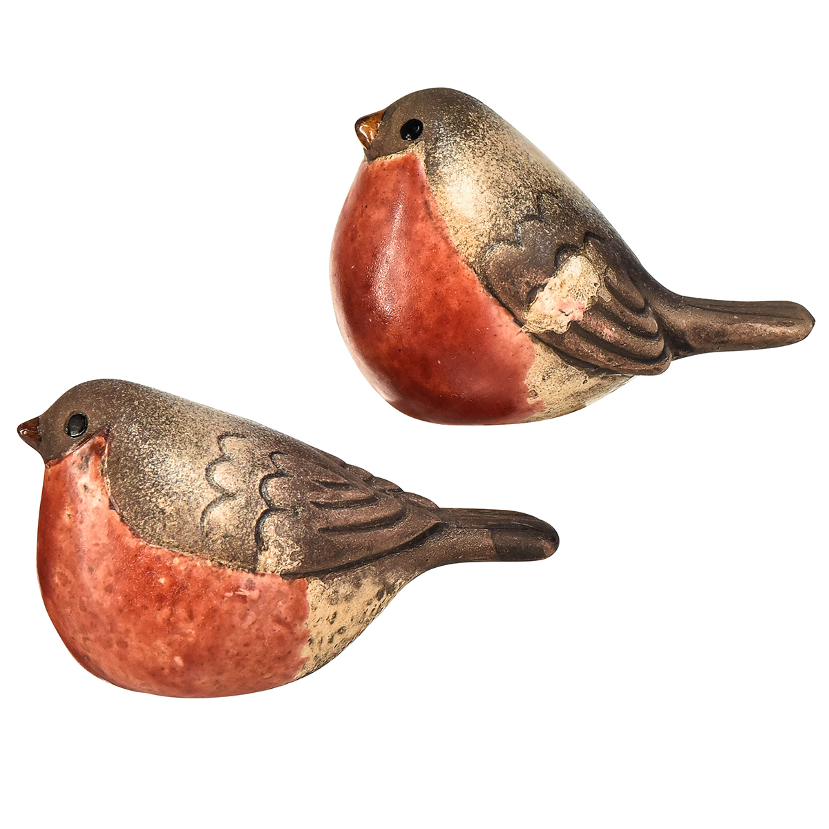 Keramiske Robin-figurer - Røde og naturlige toner, 5,4 cm - Perfekt til have og hjem - Pakke med 4