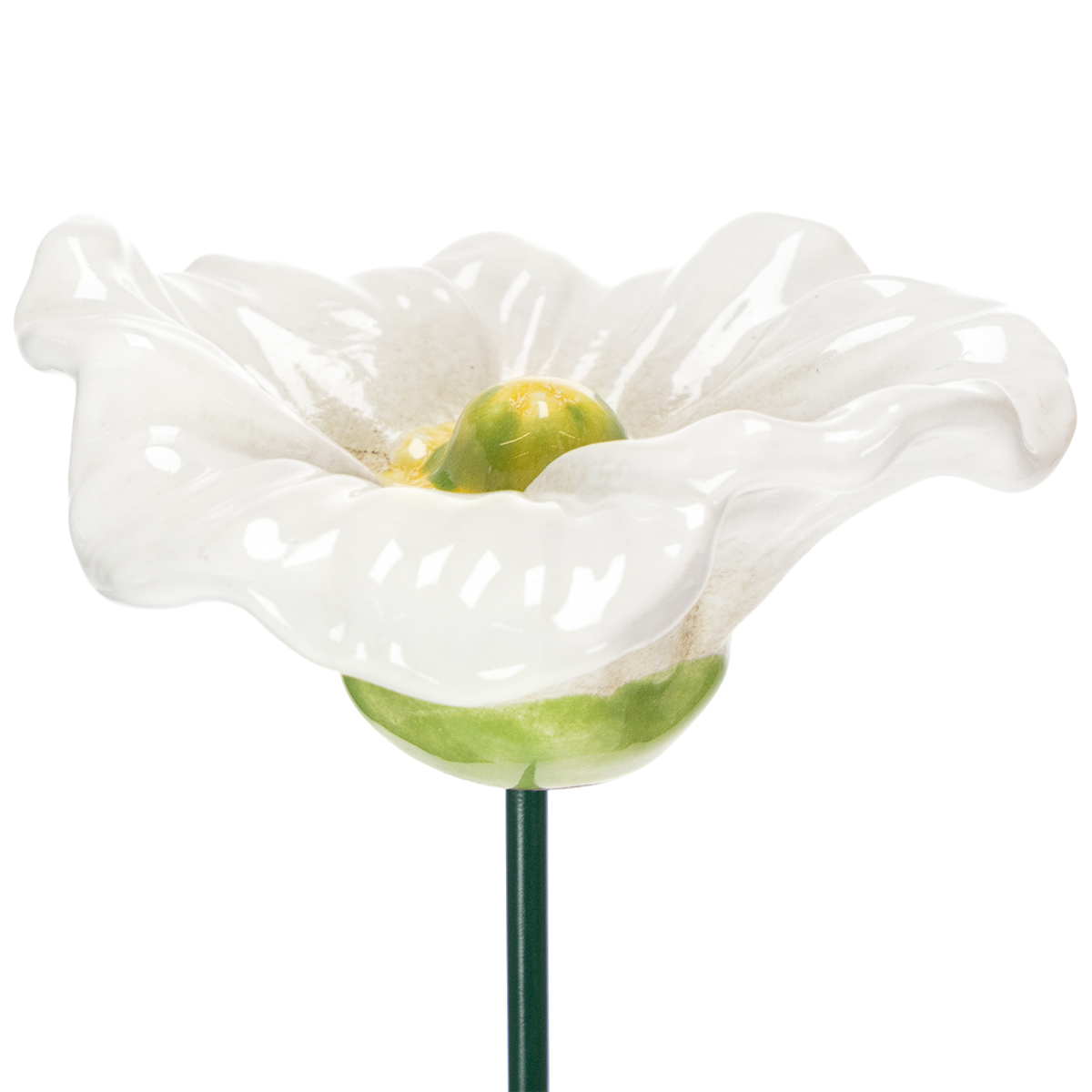 Disse keramiske valmuer fascinerer med deres indviklede detaljer. Hvert stykke er et miniature-kunstværk, der dygtigt indfanger naturens skønhed. Med en højde på 52 cm rejser de sig stilfuldt fra ethvert blomsterbed uden at være overvældende. Blomsterne med en diameter på 9 cm fås i livlige nuancer af orange og klassisk hvid – en dejlig farvekontrast, der vil forbedre dit havelandskab. Uanset om du placerer dem enkeltvis i blomsterbedet eller arrangerer dem parvis, vil de give ynde og karakter til dit udendørsområde.