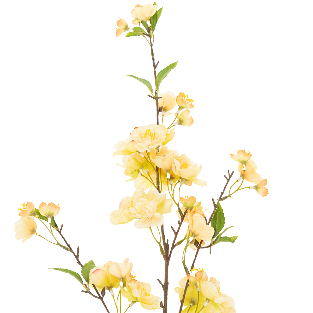 Især i kombination med naturlige materialer som træ eller keramik skaber kirsebærblomstgrenen en harmonisk atmosfære, uanset om det er i landlig stil eller et moderne Japandi-design. Selv en enkelt gren i en simpel glasvase tilføjer et levende præg. Til bryllupper eller andre begivenheder er kirsebærblomstgrenen også et godt valg: den tilføjer romantiske accenter uden at overvælde den samlede indretning. De gule blomster symboliserer glæde og optimisme, hvilket gør den til et vidunderligt valg til særlige lejligheder.