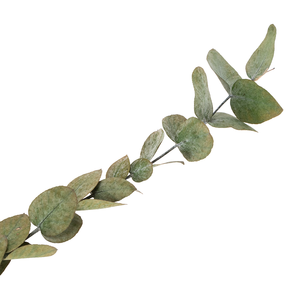 Den konserverede eukalyptus, med sine grønne blade, der hænger fast i grenene, ser ud, som om den lige er plukket fra træet! En skånsom proces har bevaret den dekorative grens naturlige udseende. Bladene på denne eukalyptusplante er mørkegrønne med den typiske hvidlige glans – simpelthen en smuk, tidløs moderne tørret blomsterdekoration!