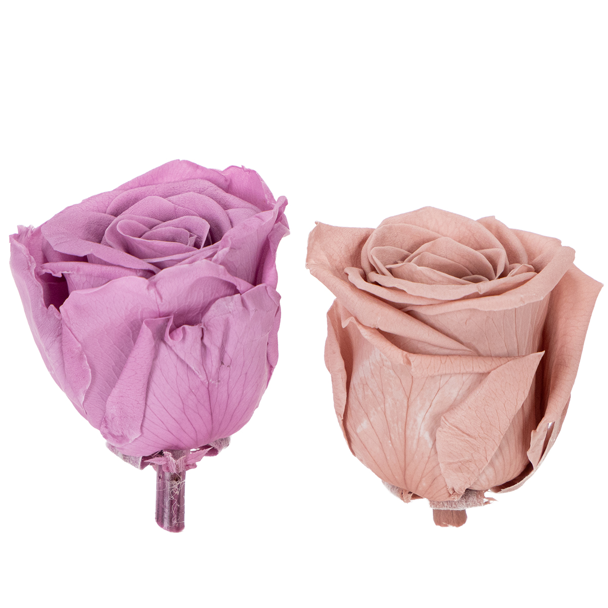 Vores konserverede roser i elegant lilla er sande allroundere og den perfekte ledsager til særlige øjeblikke. Du modtager seks smukke rosenhoveder, der hver er 4 cm i diameter og 5 cm høje. Den særlige konserveringsproces sikrer, at roserne bevarer deres naturlige form, farve og skønhed uden nogen form for vedligeholdelse. Ingen vanding, ingen visnen – disse roser er skabt til at vare evigt. Placer dem som et elegant midtpunkt på dit bryllupsbord, brug dem til kreative håndværksprojekter, eller giv dem som en romantisk jubilæumsgave. Den varme lilla nuance udstråler en magisk ro og komplementerer moderne dekorationer eller vintage-stil accenter smukt.