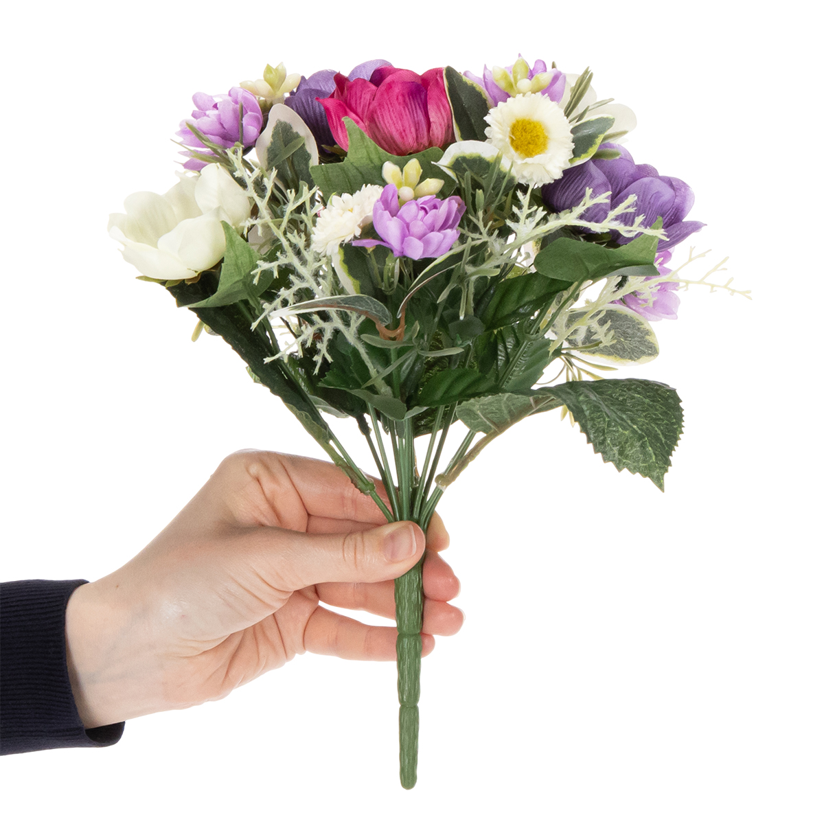 En kunstig blomsterbuket, der ikke kun er dekorativ, men også bringer varig glæde. Denne model, lavet af polyester og plastik, tilbyder et holdbart alternativ til rigtige blomster og er ideel til alle, der ønsker at nyde den muntre forårsblomstring uden konstant at skulle købe nye buketter. De livlige farver – fra blød hvid til strålende violet og dristig pink – gør denne farverige kunstige blomsterbuket til et sandt blikfang.