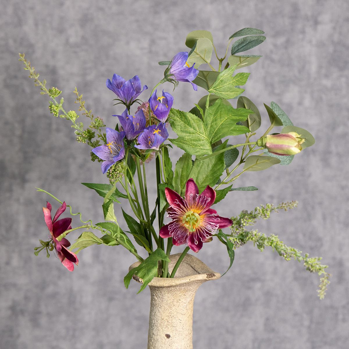 Vores kunstige blomsterbuket er en hyldest til blomsternes naturlige pragt, perfekt genskabt med plastik af høj kvalitet. De kærligt fremstillede blomster i violet, rød og grøn er et sandt blikfang. Hver blomst, uanset om det er de sarte forårsblomster i blød lilla eller de livlige røde accenter, er omhyggeligt designet til at ligne en rigtig buket. Med en højde på 60 cm og en diameter på 20 cm integreres buketten smukt i vaser til landlige, boheme eller moderne boligstile.