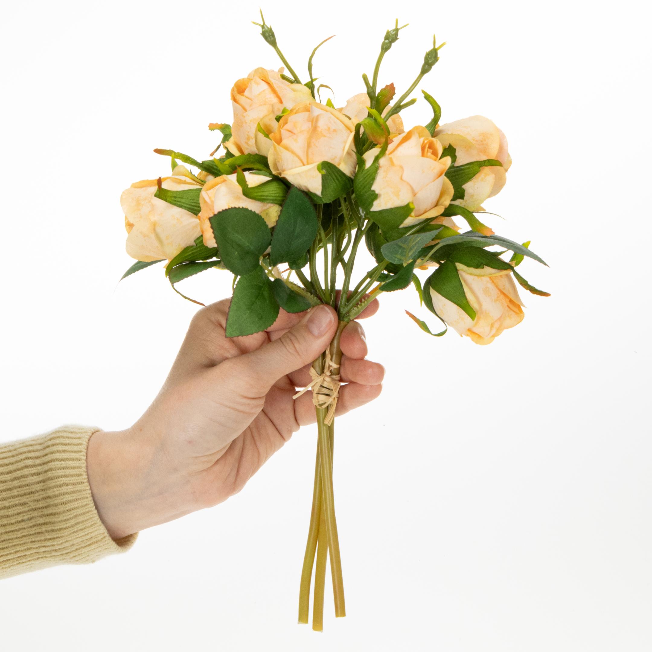 Kunstig blomsterrosebuket, realistisk dekoration til opholdsrum, 31 cm, 3 stk.