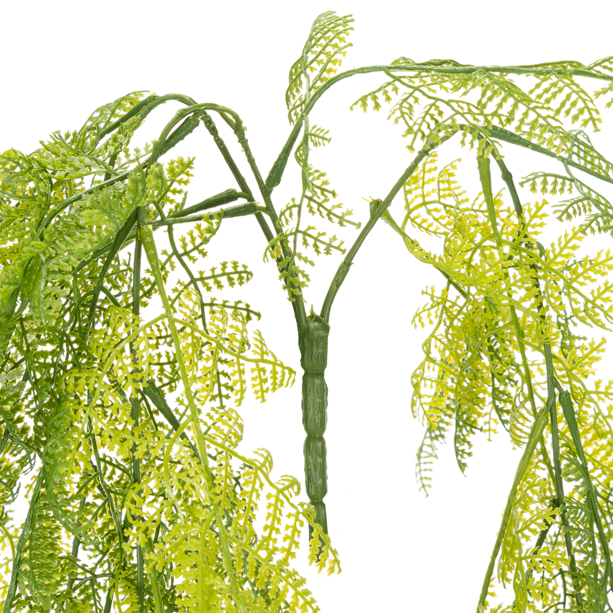 Den kunstige bregnehængeplante er langt mere end blot et dekorativt element. Den forbedrer ethvert rum, fra stuen og badeværelset til overdækkede udendørsområder som altaner eller overdækkede terrasser. I stuen bringer den en levende friskhed; i badeværelset skaber den en tiltalende kontrast til simple fliser; og på kontoret fremmer den et harmonisk arbejdsmiljø. Takket være sit vildledende realistiske udseende ser denne kunstige plante ud, som om den er kommet fra naturen – helt ubesværet.