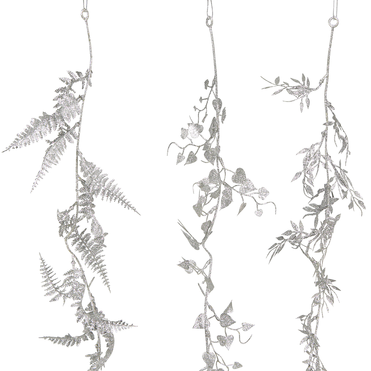 Produktnavn: Kunstig guirlande sølv glitter bregneblad guirlande 180cm 3 stk