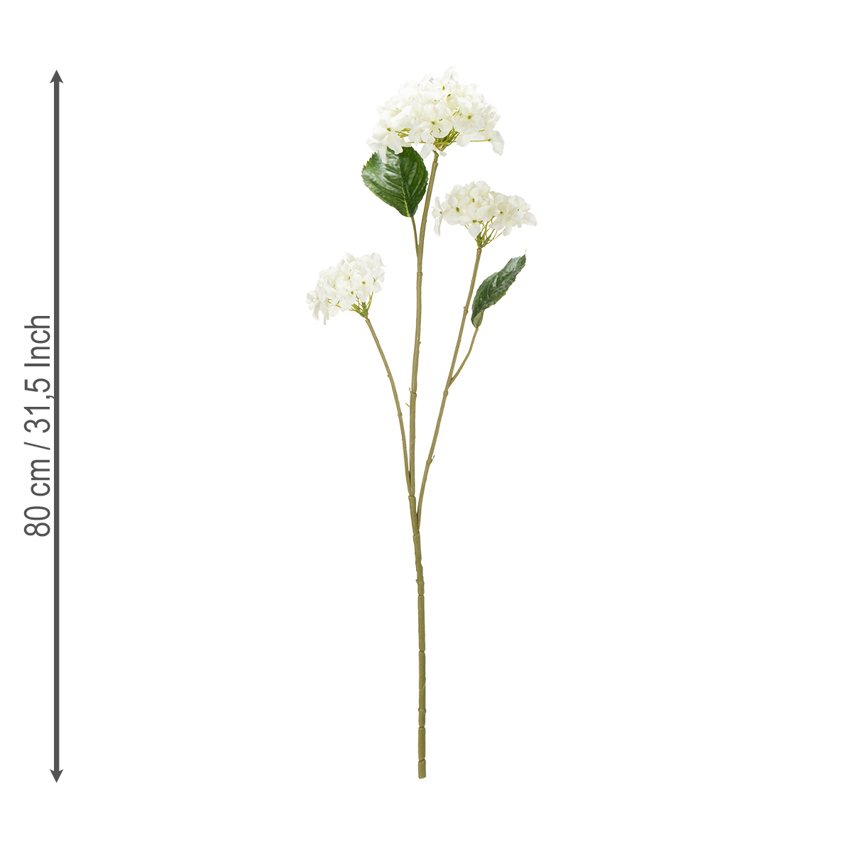 Har du nogensinde spekuleret på, hvordan du kan tilføje et elegant og tidløst præg til dit hjem med minimal indsats? Så er kunstige hortensiaer måske lige det, du leder efter! Denne hvide kunstige blomst imponerer med sit vildledende realistiske udseende og alsidighed. Uanset om den er et højdepunkt i moderne boliger, som en del af et stilfuldt bordarrangement eller som en imponerende accent i receptioner – denne holdbare, dekorative blomst passer perfekt ind i ethvert miljø. Tre frodige blomster og to grønne blade pryder en delikat stilk, hvilket giver arrangementet et særligt naturligt udseende. Med en højde på 80 cm og en bredde på 30 cm er den ideel til større vaser eller dekorative gulvarrangementer. Den højkvalitets polyester- og plastikkonstruktion sikrer, at du vil nyde denne elegante kunstige blomst i lang tid.