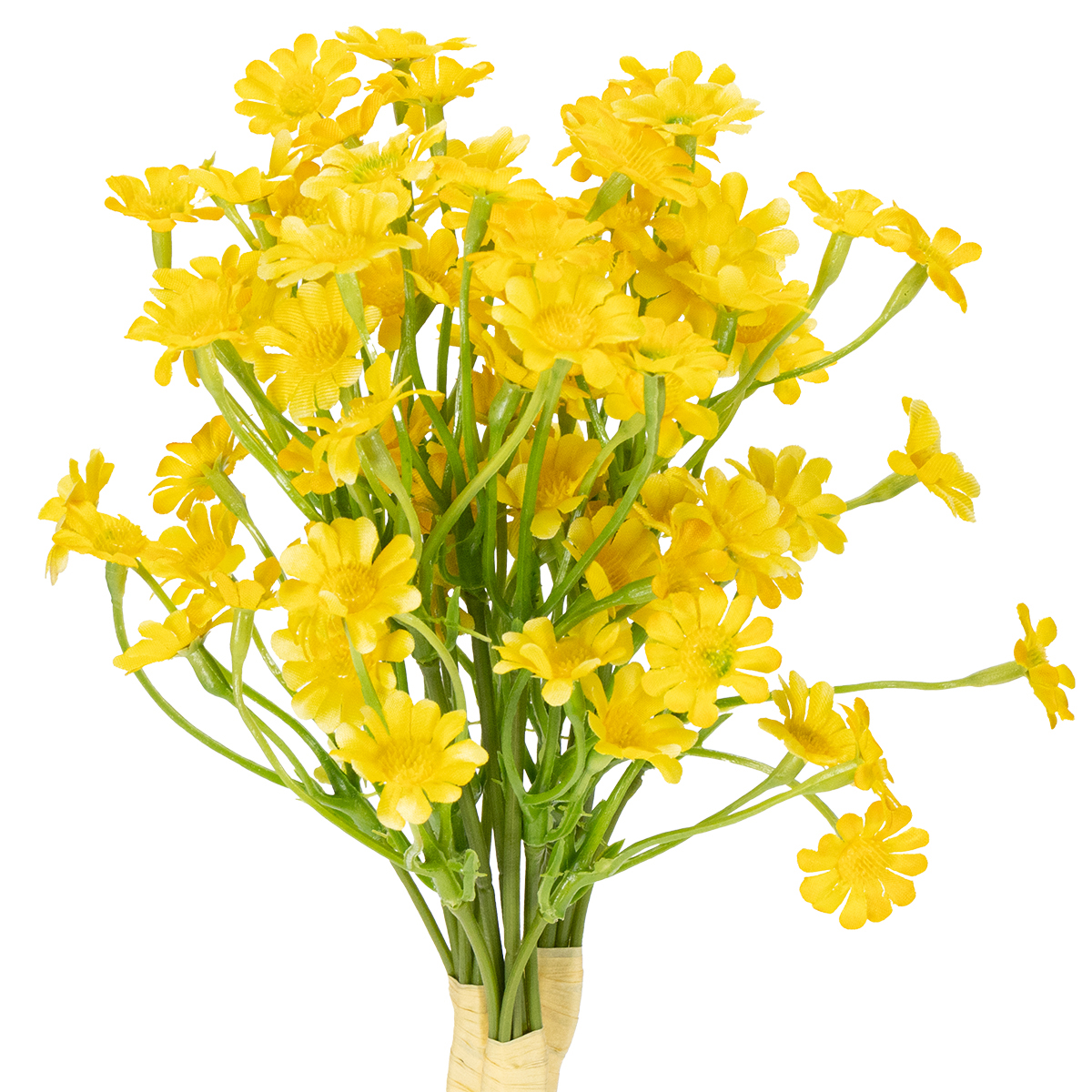 Hvor ofte har du ønsket dig en vedligeholdelsesfri, men livlig dekoration? Denne kunstige kamillebuket bringer netop det ind i din hverdag. Med sine klare gule blomster og friske grønne accenter udstråler den en uovertruffen lethed, der forbedrer ethvert rum. Uanset om det er i stuen, på dit skrivebord eller i gangen – disse dekorative kunstige blomster fortryller ved første øjekast. Og lad os være ærlige: Hvem elsker ikke en dekoration, der ikke kræver vedligeholdelse og altid ser frisk ud? Denne buket er en sand allrounder – ikke kun til dit hjem, men også som et højdepunkt til fester som bryllupper eller jubilæer.