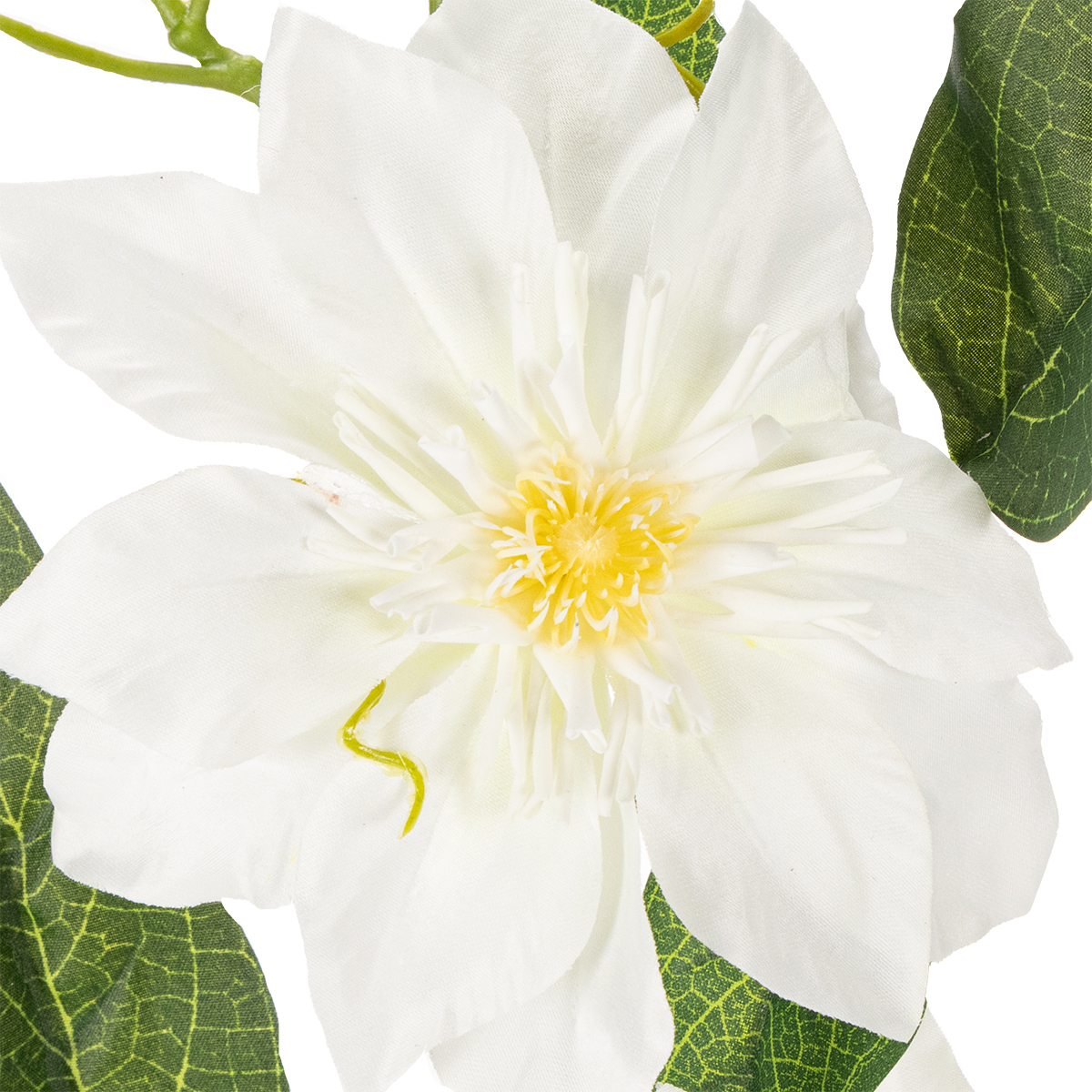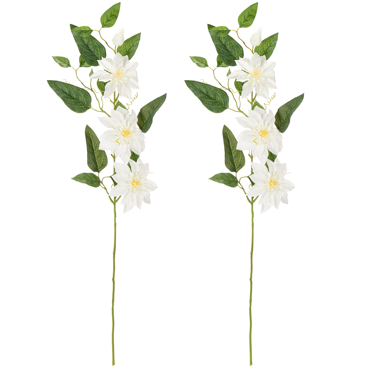 Elsker du at indrette dine værelser med stil, men foretrækker løsninger med minimal vedligeholdelse? Så er vores kunstige klematisgren lige det, du leder efter! Med sine fine hvide blomster og naturtro grønne blade bringer den et strejf af elegance og friskhed til dit hjem – uden besværet med vanding eller visnen. De 81 cm lange grene ser utroligt realistiske ud og er alsidige, uanset om de er midtpunktet i et stilfuldt bordarrangement eller som et højdepunkt i en gulvvase. Perfekt til enhver lejlighed, hvad enten det er til stuen, brylluppet eller kontoret. Prøv den ud, og lad dens slående skønhed og nemme pleje overbevise dig!