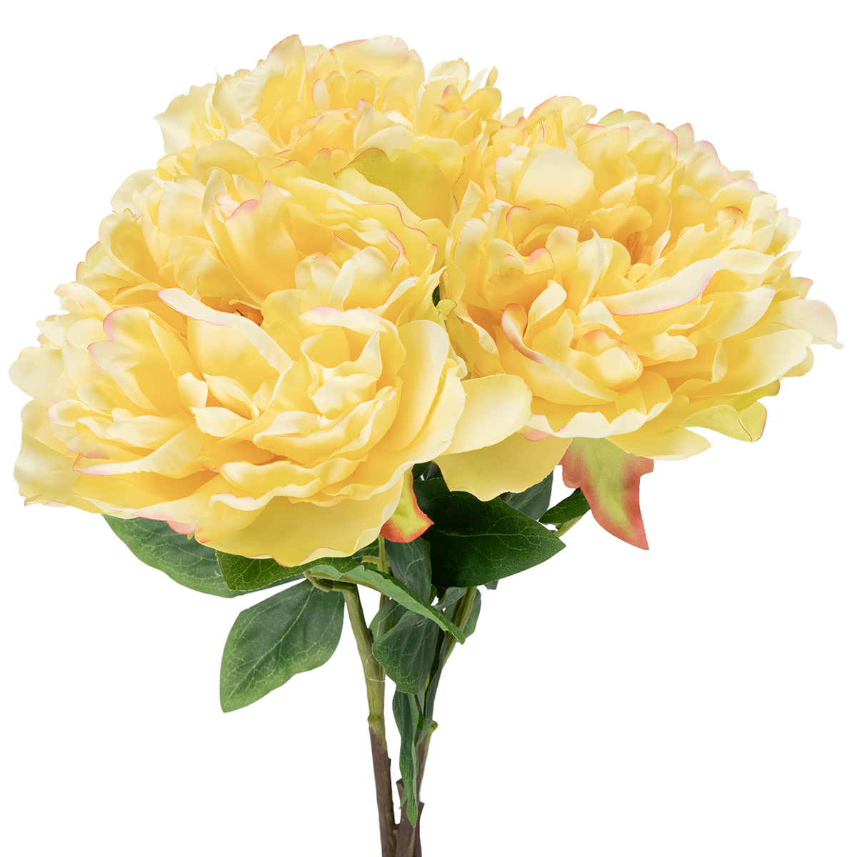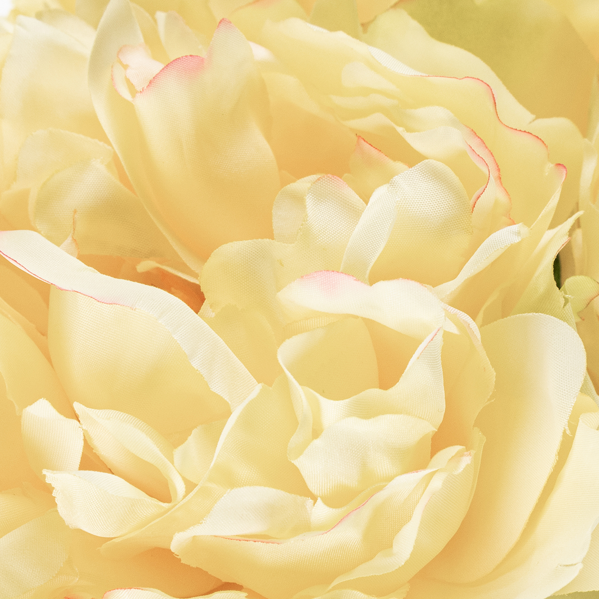 Vores kunstige pæoner er et sandt højdepunkt i enhver indretningsstil. Blomsternes bløde gule nuance skaber en venlig og indbydende atmosfære, hvilket gør dem perfekte til moderne, skandinaviske eller endda klassiske omgivelser. Takket være silkestoffet af høj kvalitet ser blomsterne utroligt realistiske ud. Ideel til dem, der elsker naturlige blomster, men ønsker at undgå besværet med konstant vanding og visnen. Disse blomster er langtidsholdbare, nemme at passe og bevarer deres oprindelige skønhed i mange år fremover.