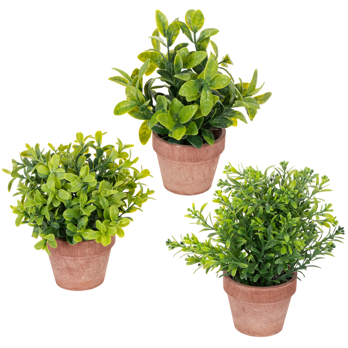 Kunstig plante i en urtepotte med realistisk tekstur til indendørs brug og dekoration, 18 cm, 3 stk.