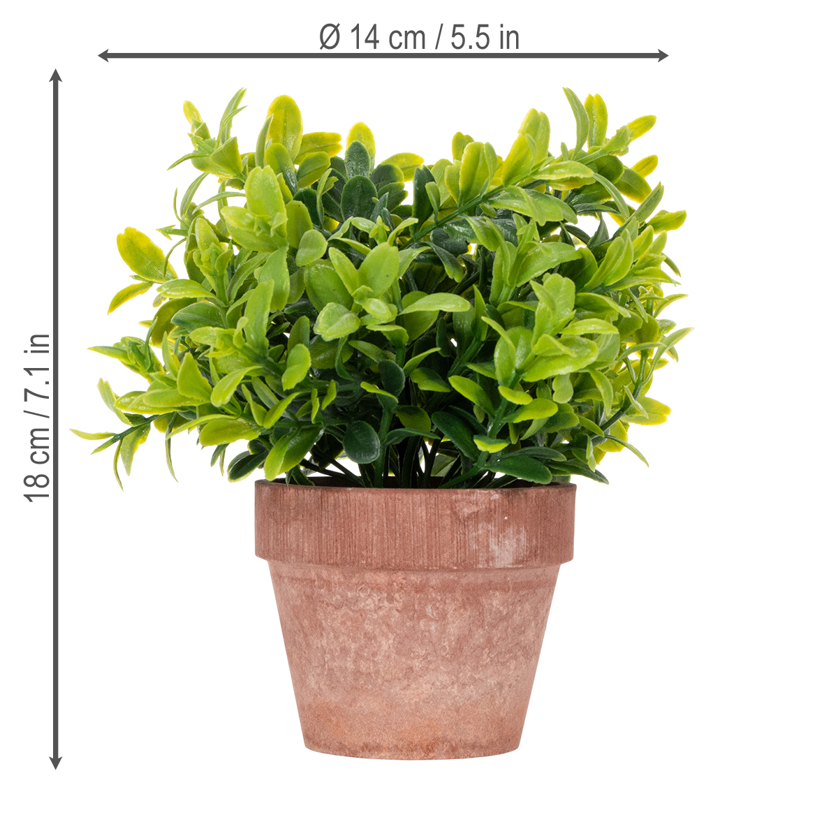 Vil du give dit hjem et friskt, grønt præg uden besværet med plantepleje? Vores kunstige plante i en urtepotte er den perfekte løsning! Med en højde på 18 centimeter og en diameter på 14 centimeter passer dette tredelte sæt af høj kvalitet harmonisk ind i enhver indretningsstil. De utroligt realistiske blade i en rig grøn nuance tilføjer naturlig charme til dit rum. Uanset om det er til stueindretning, kontoropfriskning eller badeværelsesdesign, er disse letplejede stueplanter alsidige og tilbyder en perfekt kombination af stil og funktionalitet. Planterne er lavet af slidstærkt plastik, er langtidsholdbare og bevarer deres attraktive udseende. Den ideelle dekorative plante til alle, der ønsker at bringe grønt indendørs og samtidig omfavne tidløs elegance.