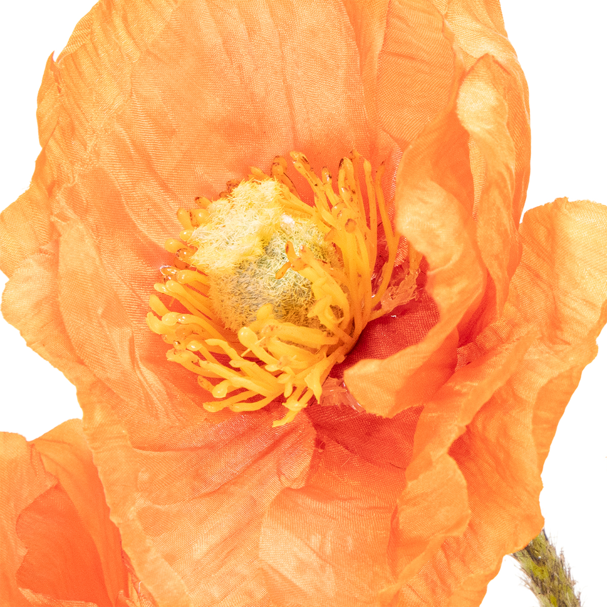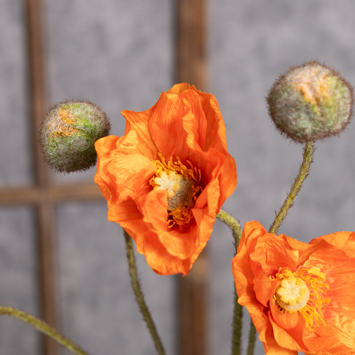 Den varme orange farve harmonerer smukt med naturlige trætoner, guldfarvet indretning eller minimalistiske sorte møbler i en moderne stil. Vores tip: Kombiner valmuebuketten med sarte hvide tørrede blomster eller grønne kunstige planter for et levende og afbalanceret look. Især ved festlige lejligheder som middagsselskaber eller bryllupper vil buketten være et sandt blikfang på bordet.