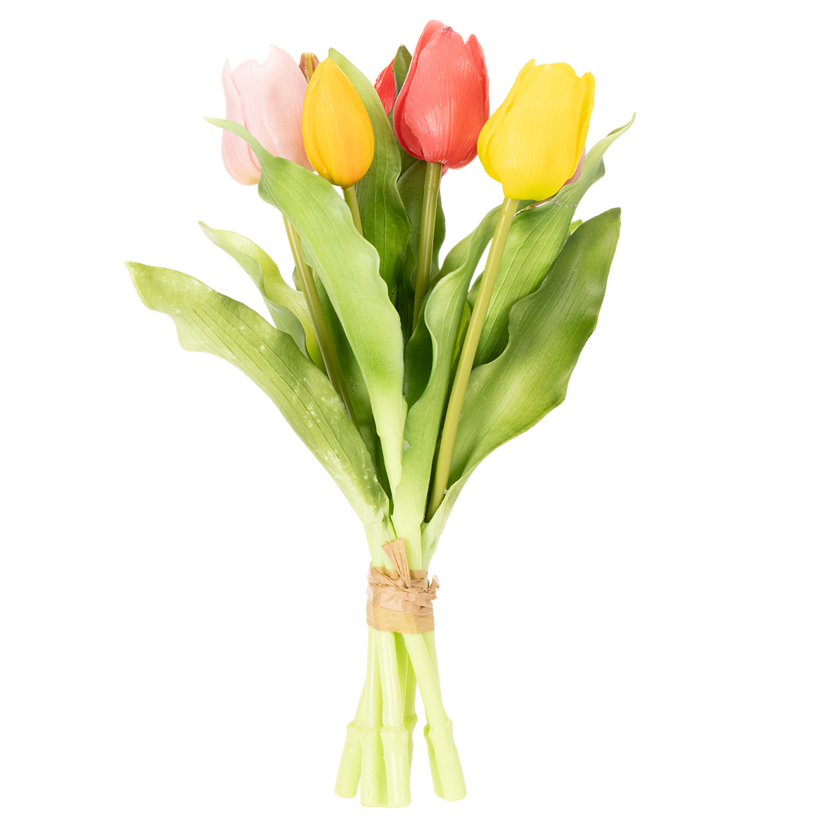 Foråret er i luften! Disse kunstige tulipaner bringer magien fra blomstringssæsonen direkte ind i dit hjem – uden daglig vedligeholdelse. Har du nogensinde fortvivlet over rigtige blomster, fordi de simpelthen ikke holder længe? Med disse realistiske blomster i pink, rød og gul har du fundet den perfekte løsning. Uanset om du vil dekorere dit stuebord eller tilføje et strejf af livlighed til dit kontorarbejdsområde, tilbyder denne tulipanbuket en charmerende og alsidig måde at sprede forårsfølelsen på. Blomsterne er lavet af gummi af høj kvalitet og imponerer med deres realistiske tekstur og ser utroligt naturtro ud. Og alle, der sætter pris på lang levetid og minimal vedligeholdelse, vil elske denne stilfulde dekoration. Uanset om de er farverige eller diskret arrangeret individuelt, forvandler disse kunstige blomster ethvert rum til en forårsoase!