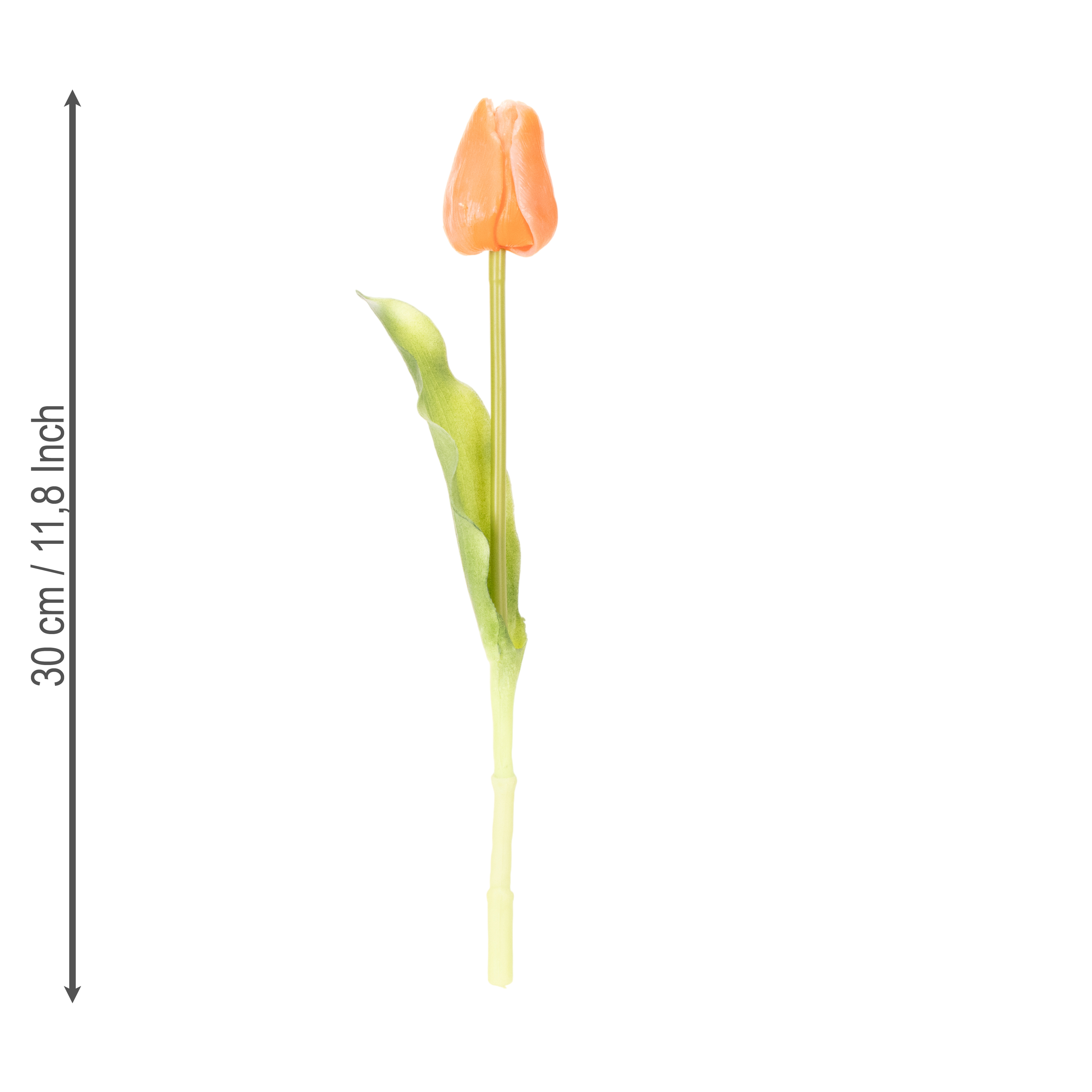 Vil du friske dit hjem op? Hvad med en forårsdekoration, der holder sig frisk for evigt? Vores kunstige tulipaner kombinerer naturlig elegance med praktisk holdbarhed. De fine, harmonisk farvede tulipanhoveder i en livlig orange farve tilføjer et strejf af farve til din stue, køkkenbord eller entré. Med en højde på 30 cm er disse kunstige blomster kompakte nok til alsidige arrangementer, men alligevel store nok til at skabe et slående udtryk. Fra det øjeblik du ser dem, vil du blive forbløffet over deres naturtro udseende. Disse kunstige blomster er perfekte til alle, der ønsker at bringe forårets charme direkte ind i deres hjem uden besværet med vanding eller vedligeholdelse.