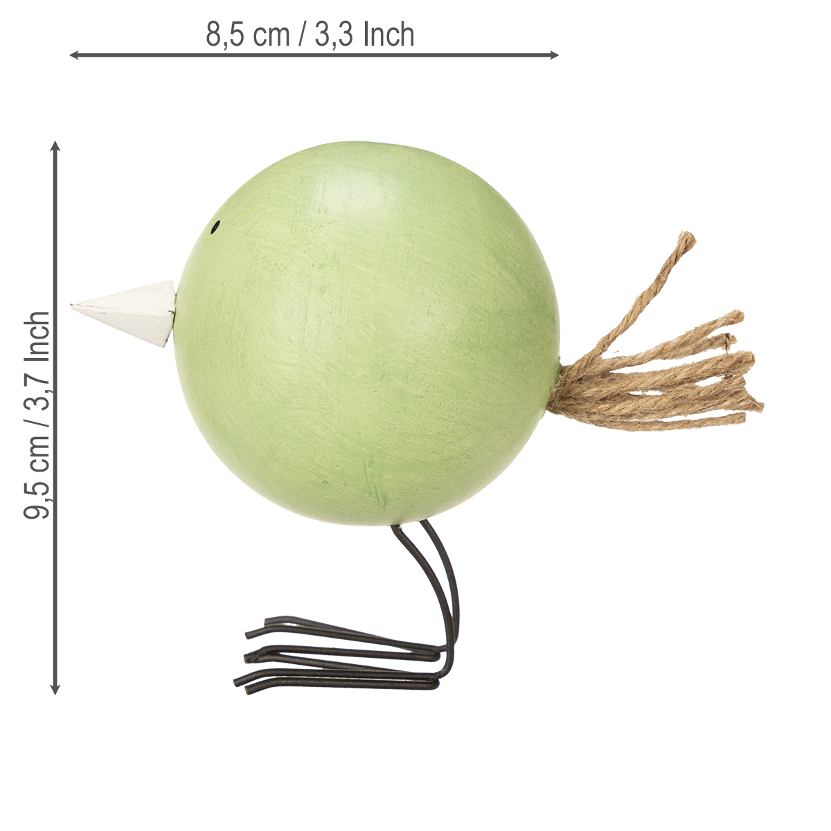 Dette sæt består af tre kyllinger i gul, pink og grøn. Deres let blanke overflade tilføjer et strejf af livlighed uden at være overvældende. Med en højde på 9,5 cm og en diameter på 8,5 cm er de kompakte nok til fleksibel udstilling – uanset om de er på hylder, kommoder eller direkte på bordet. De muntre farver er særligt harmoniske og passer smukt til andre forårs- eller påskedekorationer. For et stilfuldt og naturligt look kan disse kyllinger endda kombineres med fine blomsterarrangementer eller andre trægenstande. En sand allrounder til din indretning!